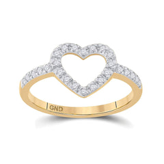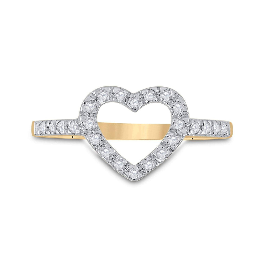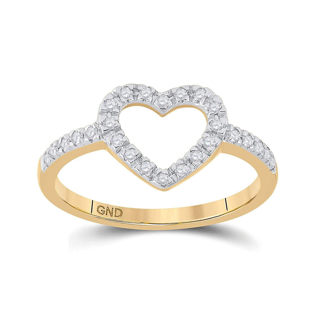 10kt Yellow Gold Womens Round Diamond Heart Ring 1/5 Cttw