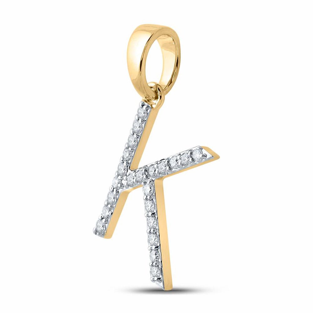 10kt Yellow Gold Womens Round Diamond K Initial Letter Pendant 1/6 Cttw