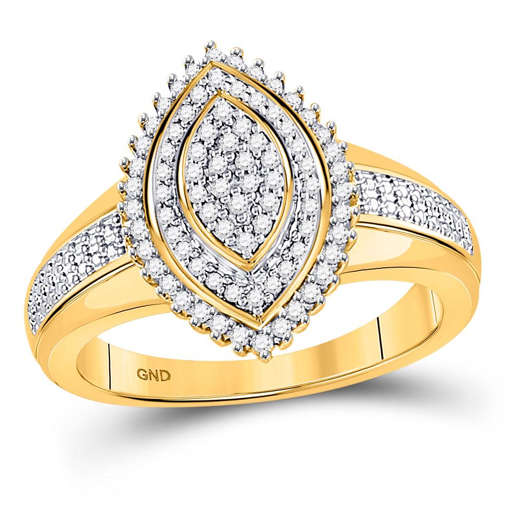 10kt Yellow Gold Womens Round Diamond Marquise-shape Cluster Ring 1/4 Cttw