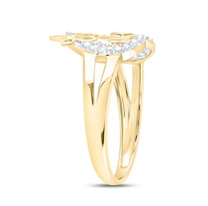 10kt Yellow Gold Womens Round Diamond Mom Mother Heart Butterfly Ring 1/6 Cttw