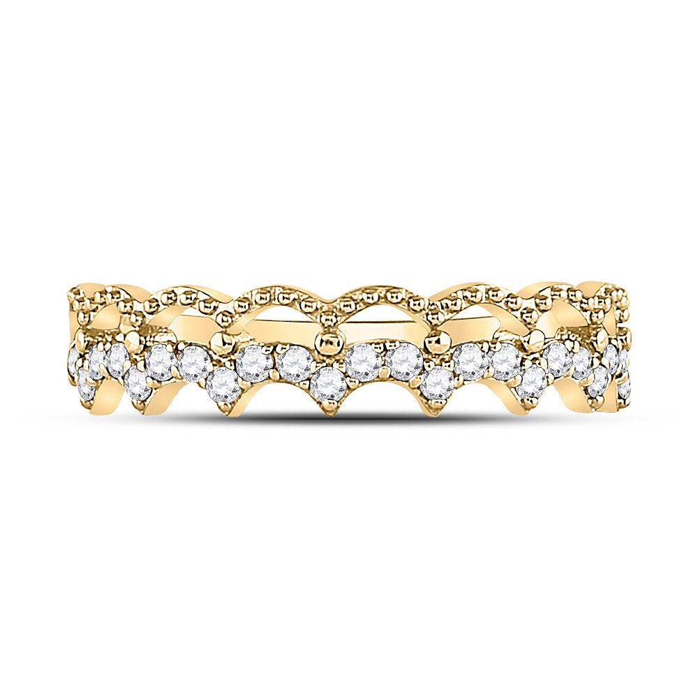 10kt Yellow Gold Womens Round Diamond Scalloped Stackable Band Ring 1/4 Cttw