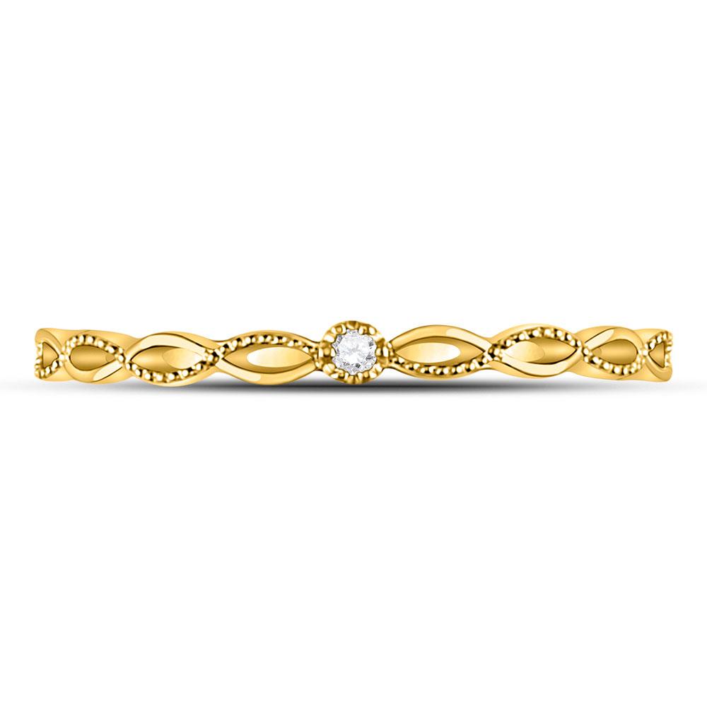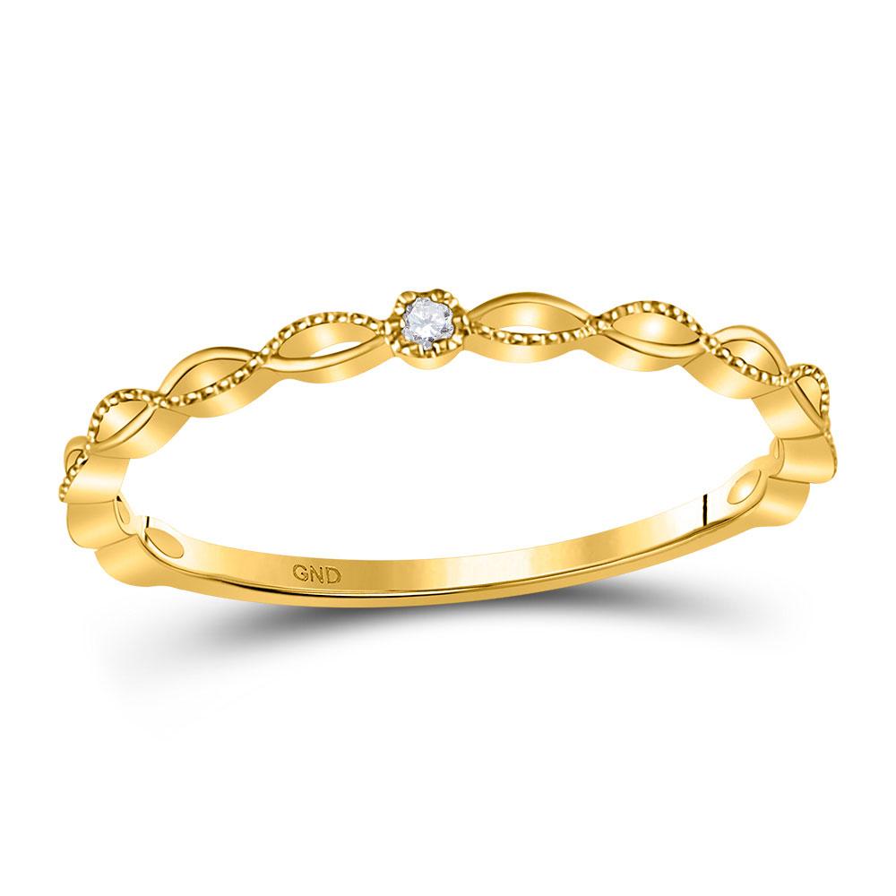 10kt Yellow Gold Womens Round Diamond Stackable Band Ring .01 Cttw