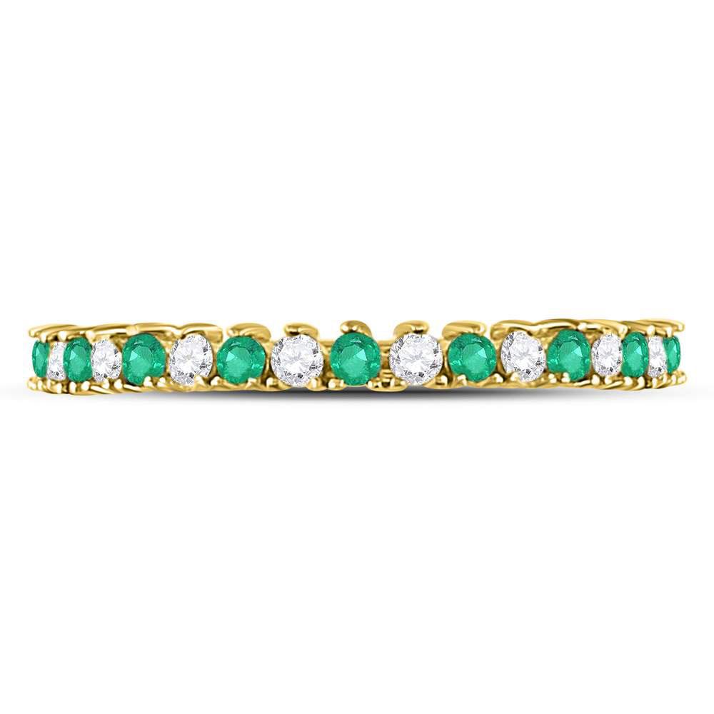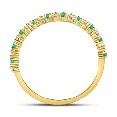 10kt Yellow Gold Womens Round Emerald Diamond Stackable Band Ring 1/5 Cttw