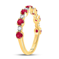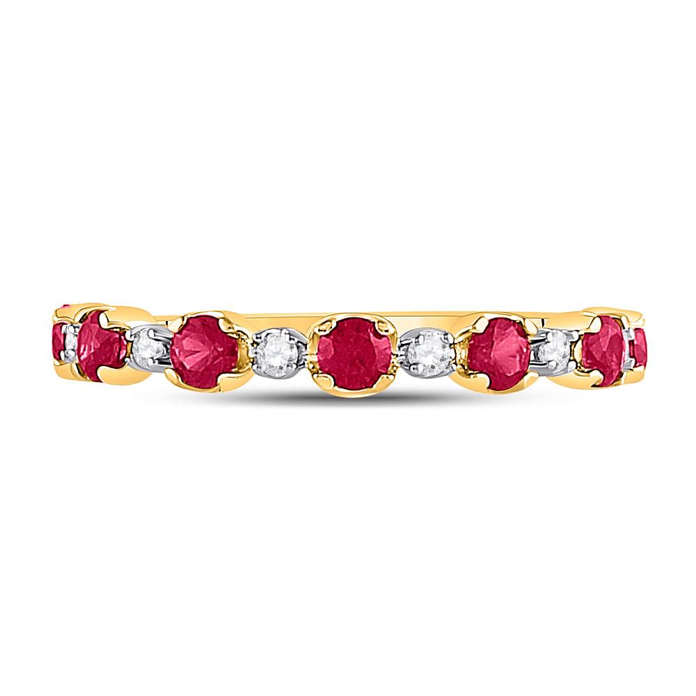 10kt Yellow Gold Womens Round Lab-Created Ruby Band Ring 1 Cttw