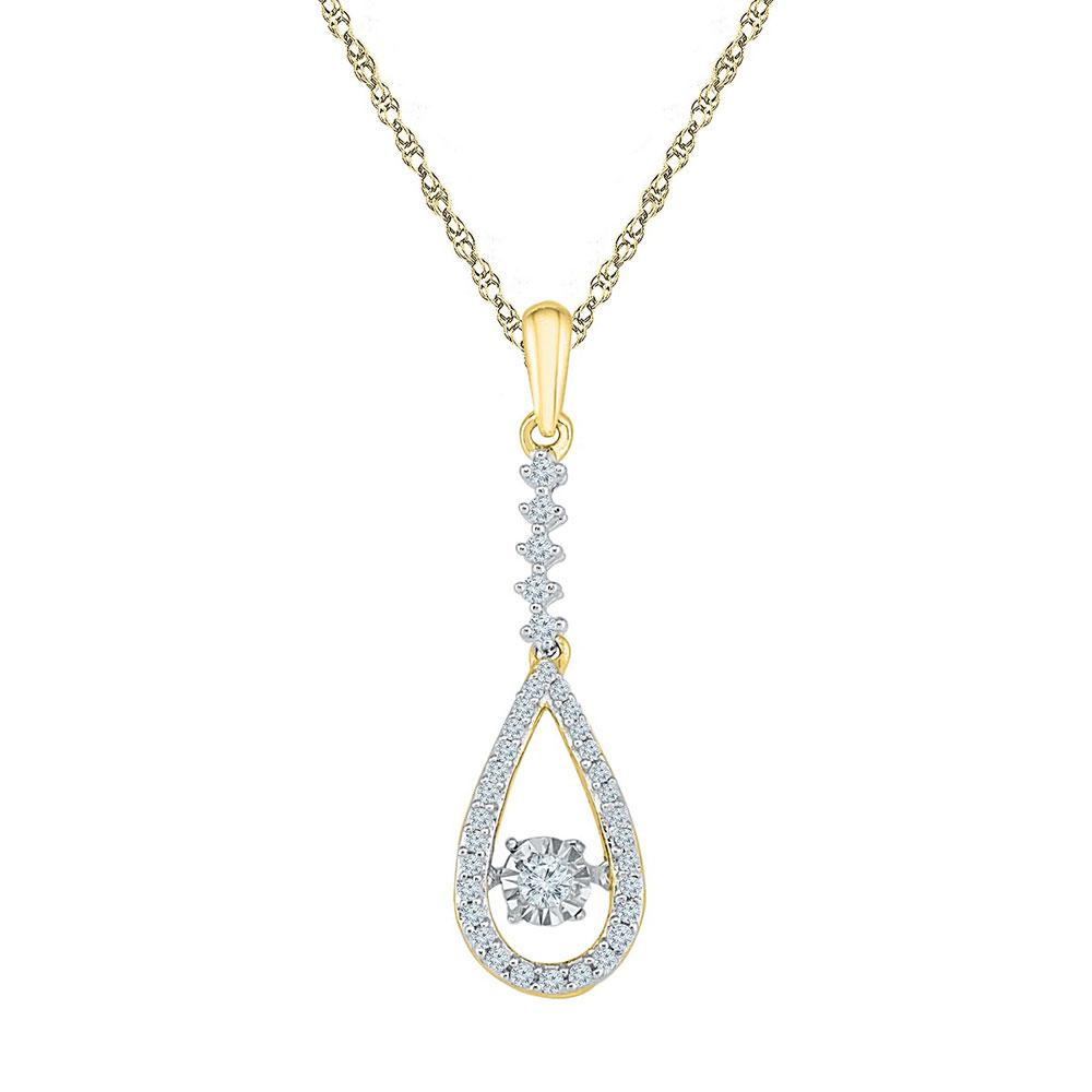 10kt Yellow Gold Womens Round Moving Twinkle Diamond Teardrop Pendant 1/5 Cttw