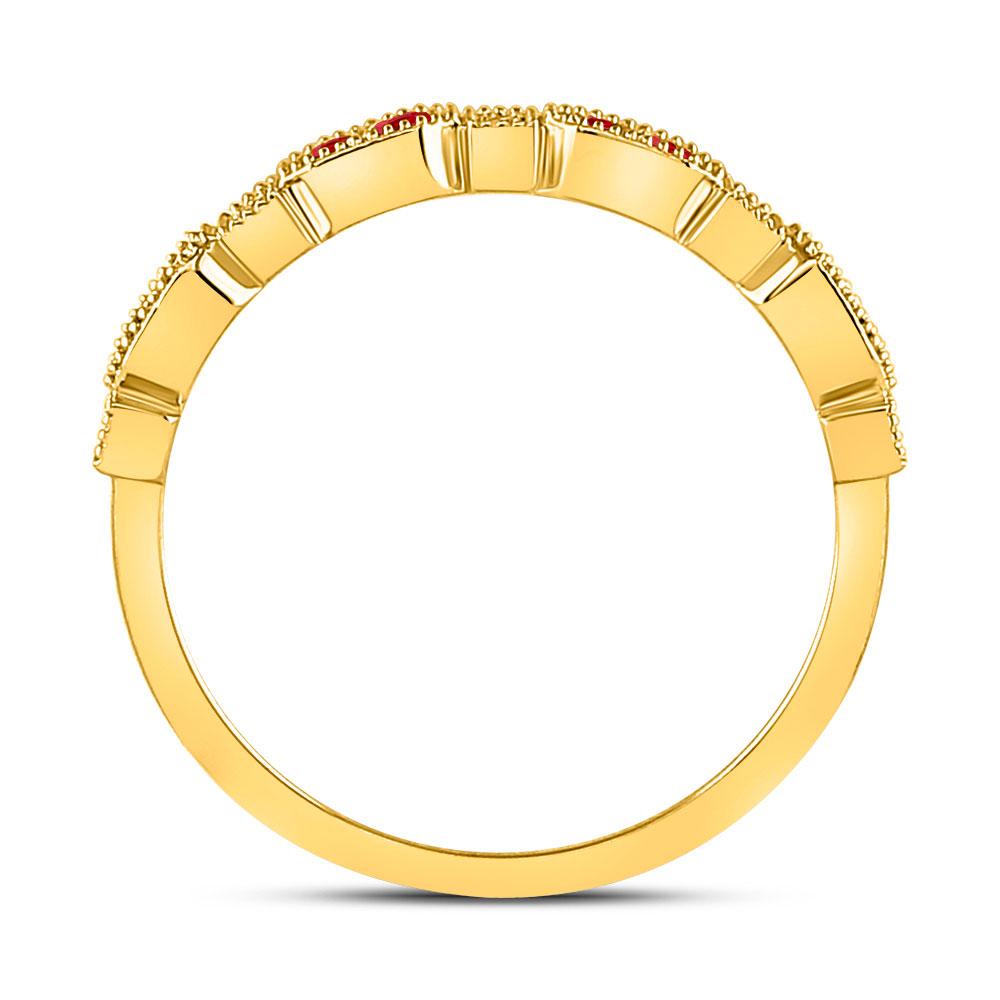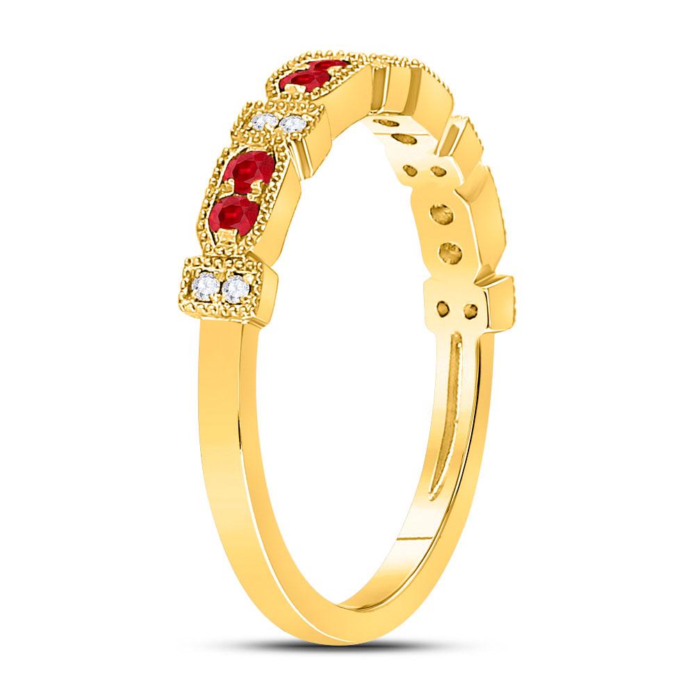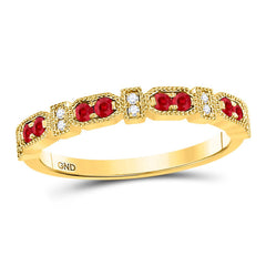 10kt Yellow Gold Womens Round Ruby Diamond Stackable Band Ring 1/4 Cttw