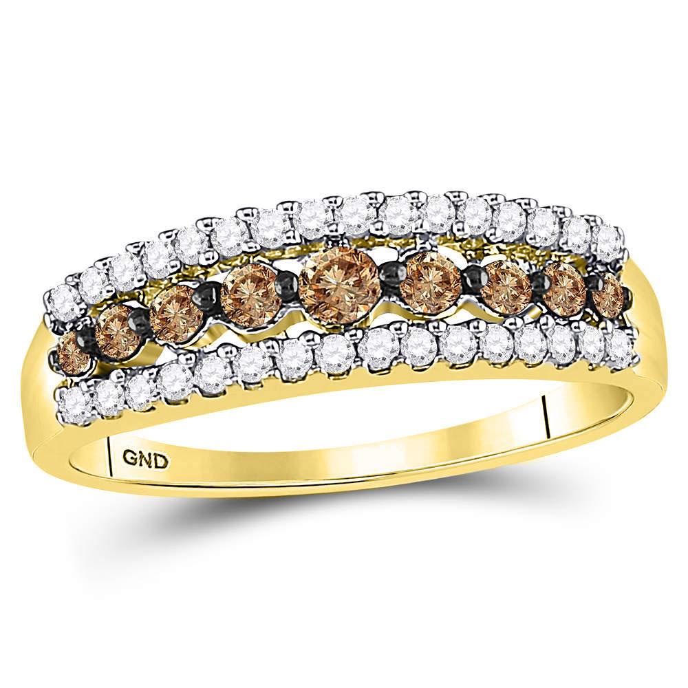14k Yellow Gold Womens Brown Diamond Band Ring 1/2 Cttw