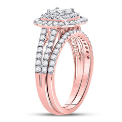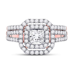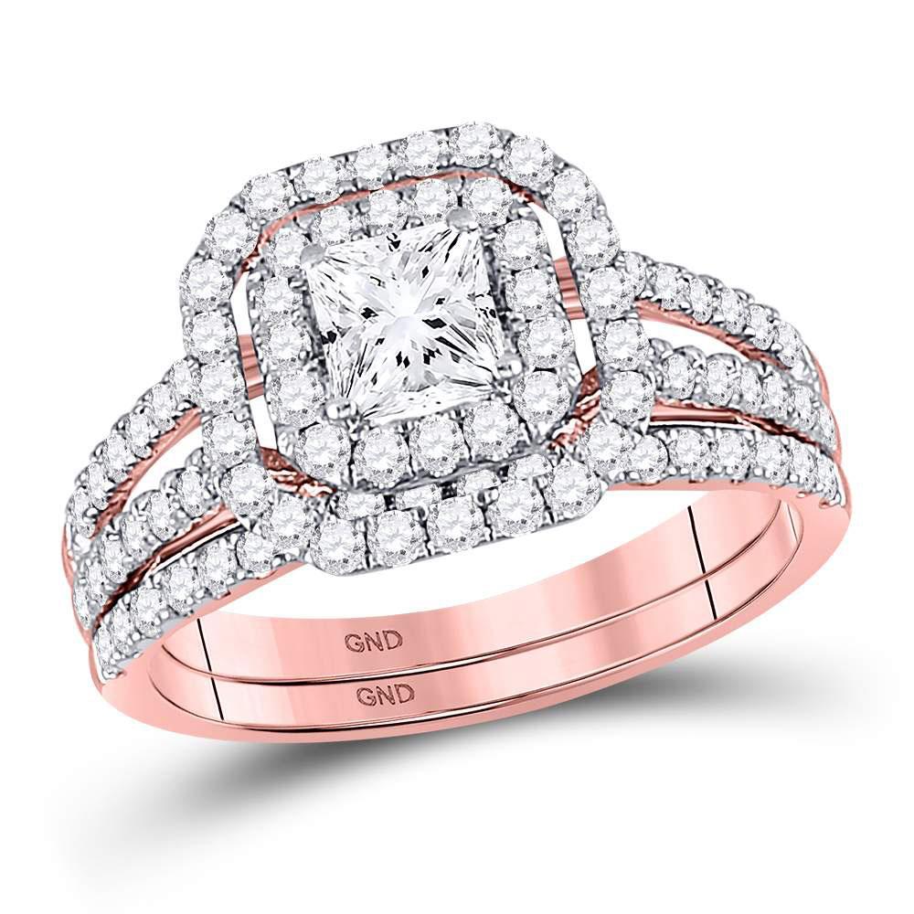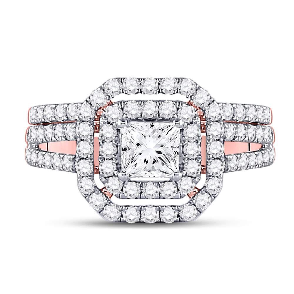 14kt Rose Gold Princess Diamond Bridal Wedding Ring Band Set 1-1/2 Cttw