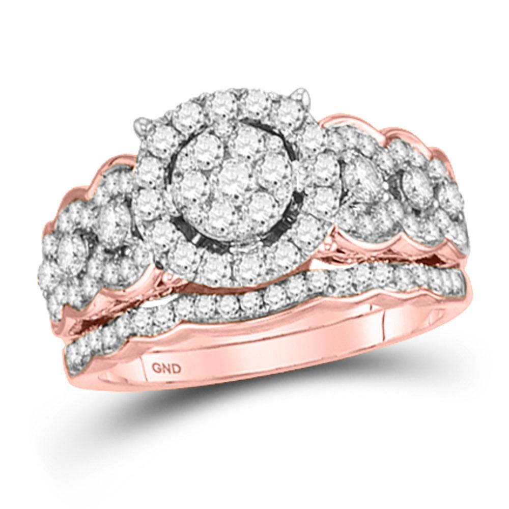 14kt Rose Gold Round Diamond Bridal Wedding Ring Band Set 1 Cttw