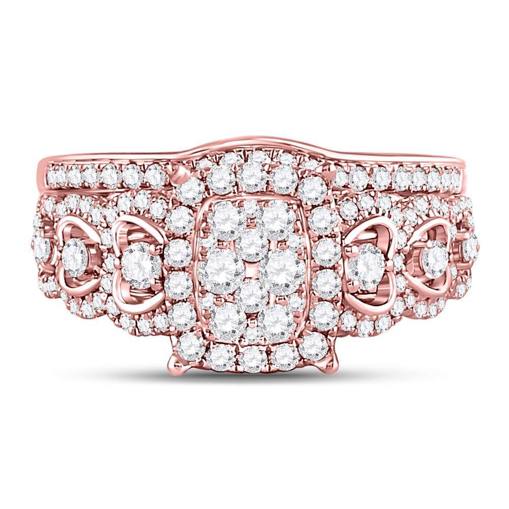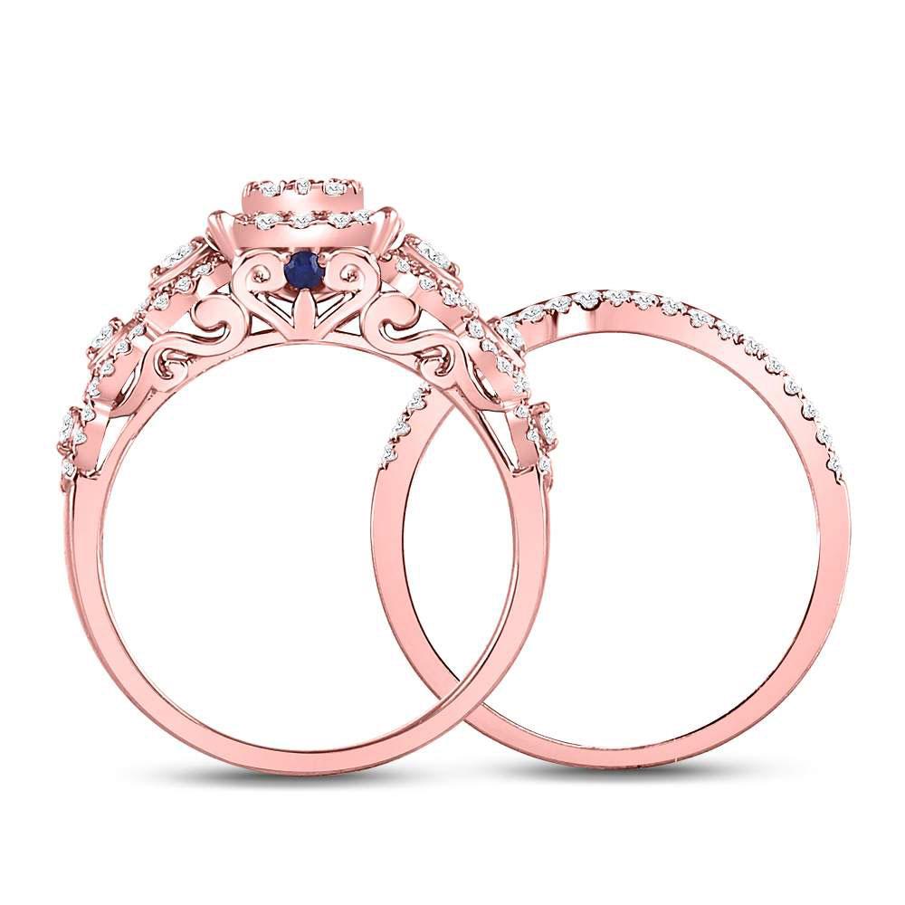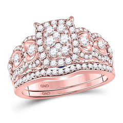 14kt Rose Gold Round Diamond Bridal Wedding Ring Band Set 7/8 Cttw