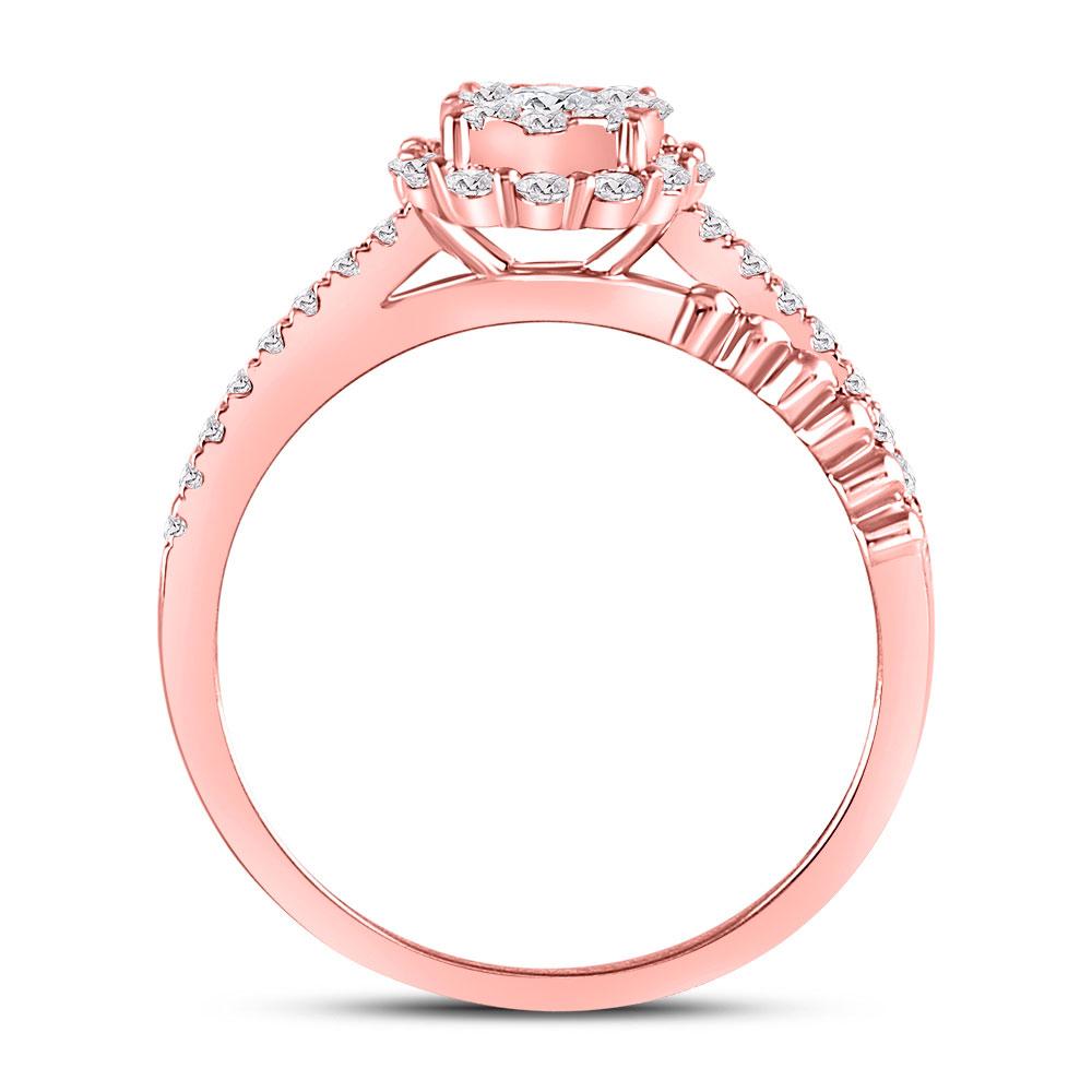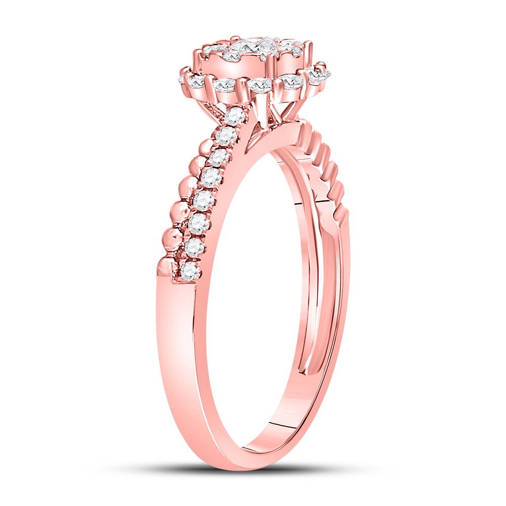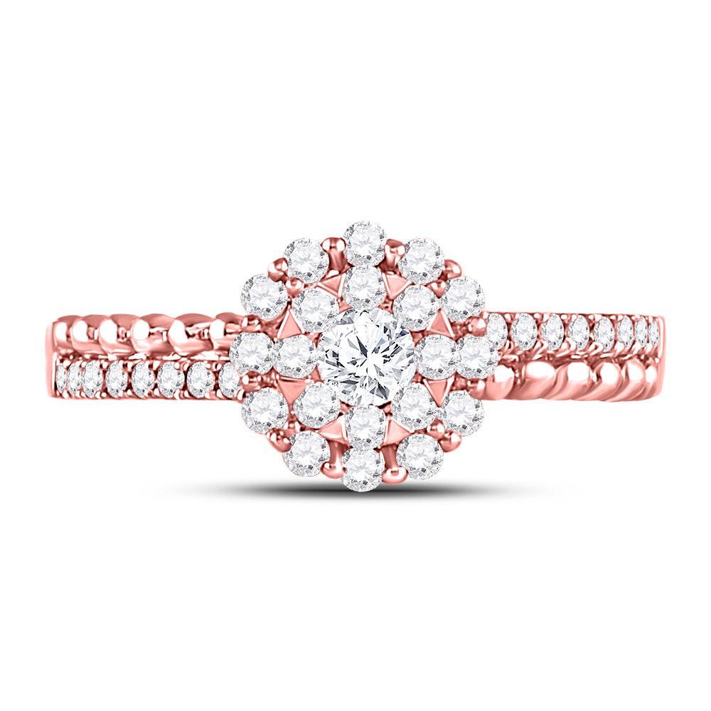 14kt Rose Gold Round Diamond Solitaire Beaded ridal Wedding Engagement Ring 1/2 Cttw