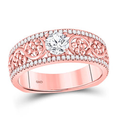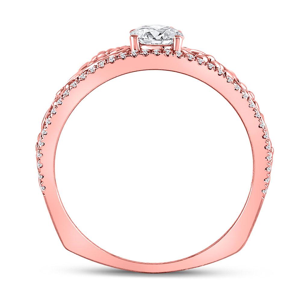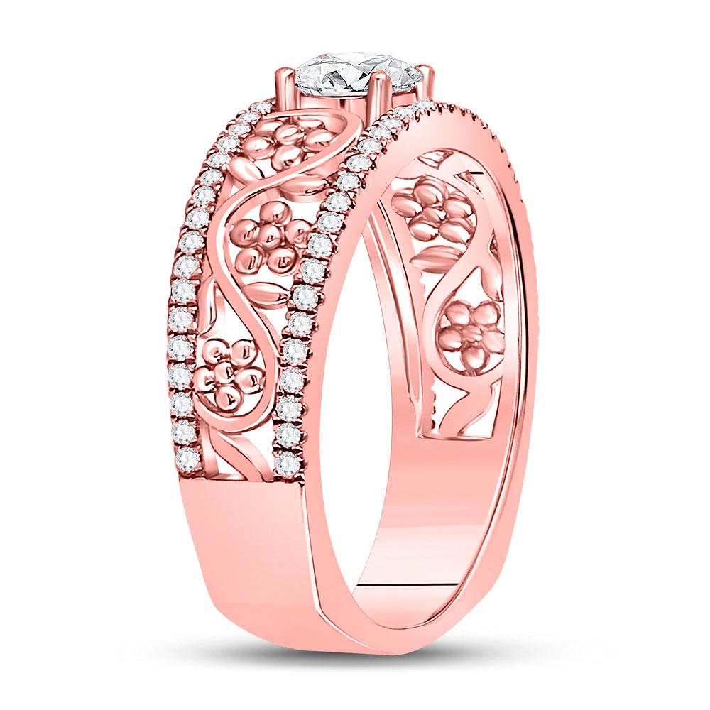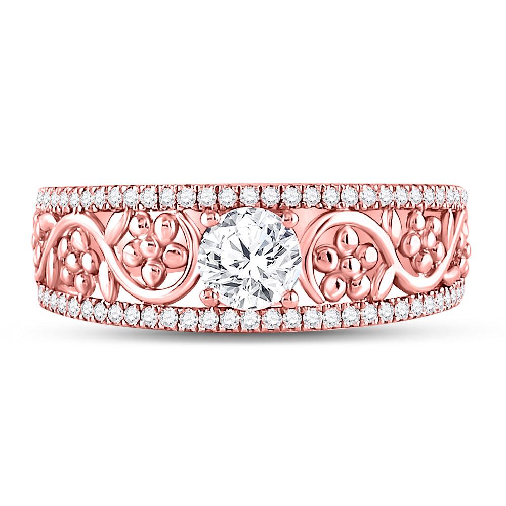 14kt Rose Gold Round Diamond Solitaire Floral Bridal Wedding Engagement Ring 3/4 Cttw