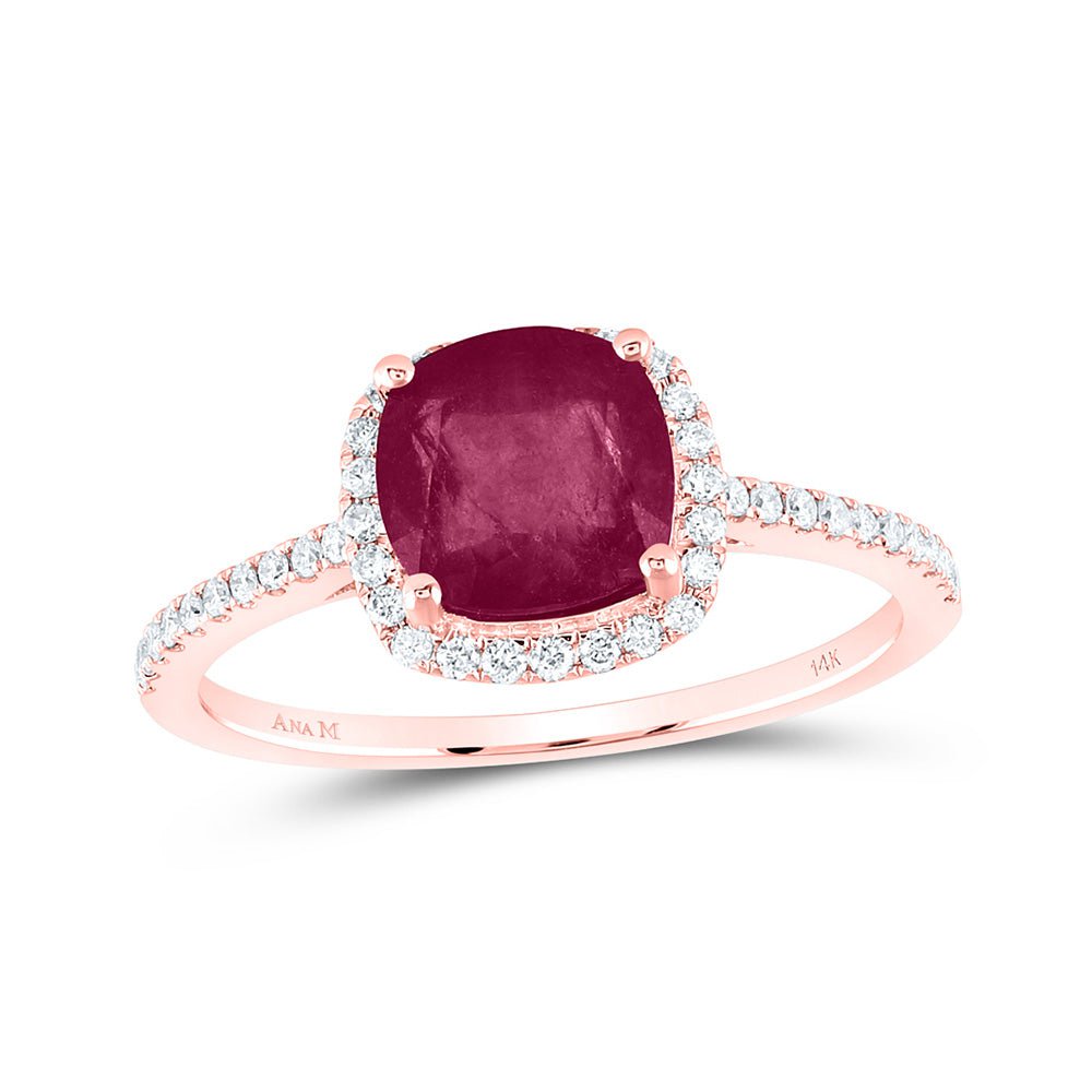 14kt Rose Gold Womens Cushion Ruby Diamond Halo Ring 2 Cttw