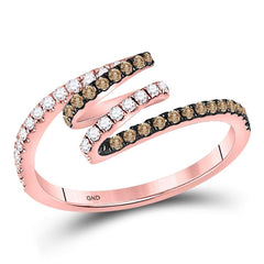 14kt Rose Gold Womens Round Brown Diamond Spiral Coil Band Ring 1/3 Cttw