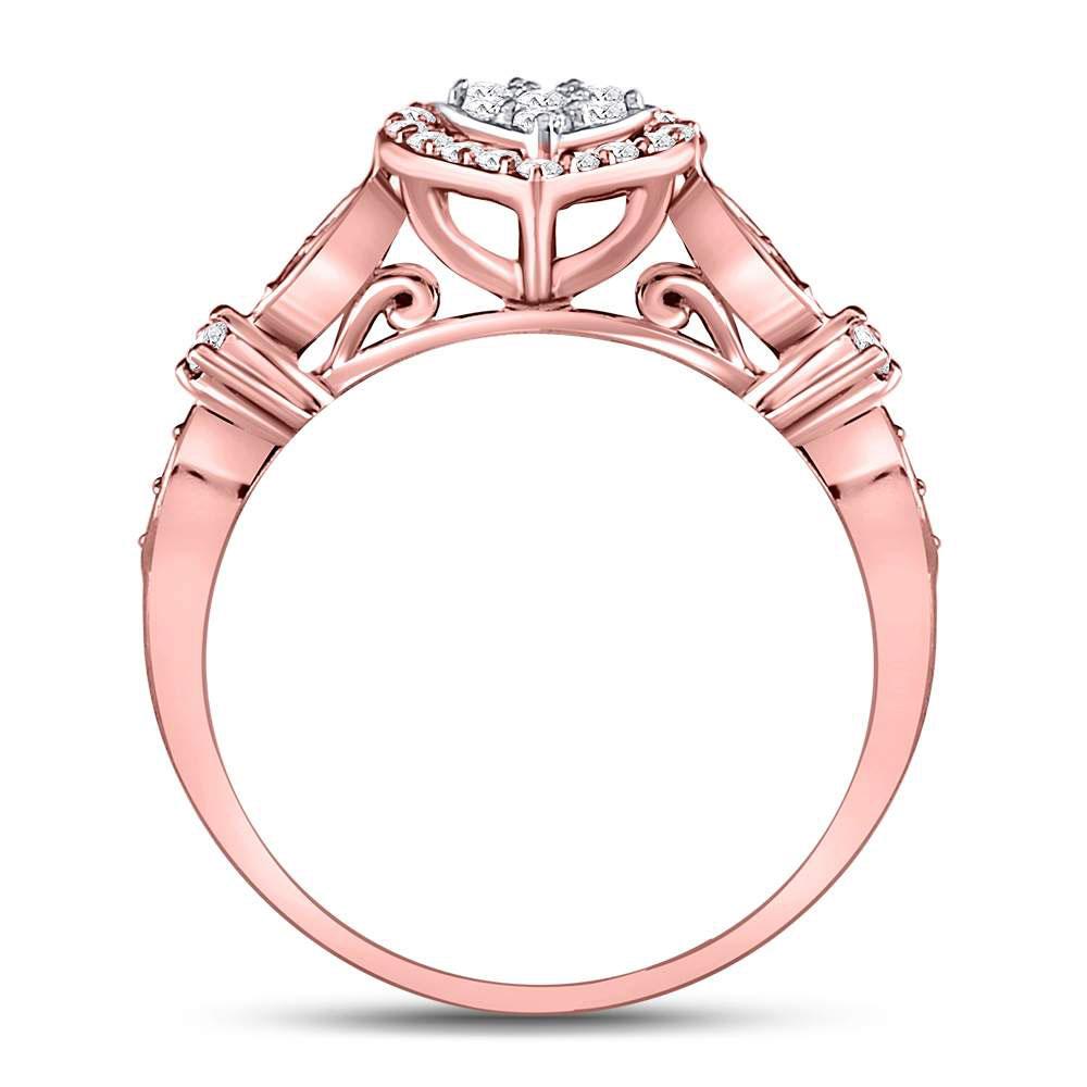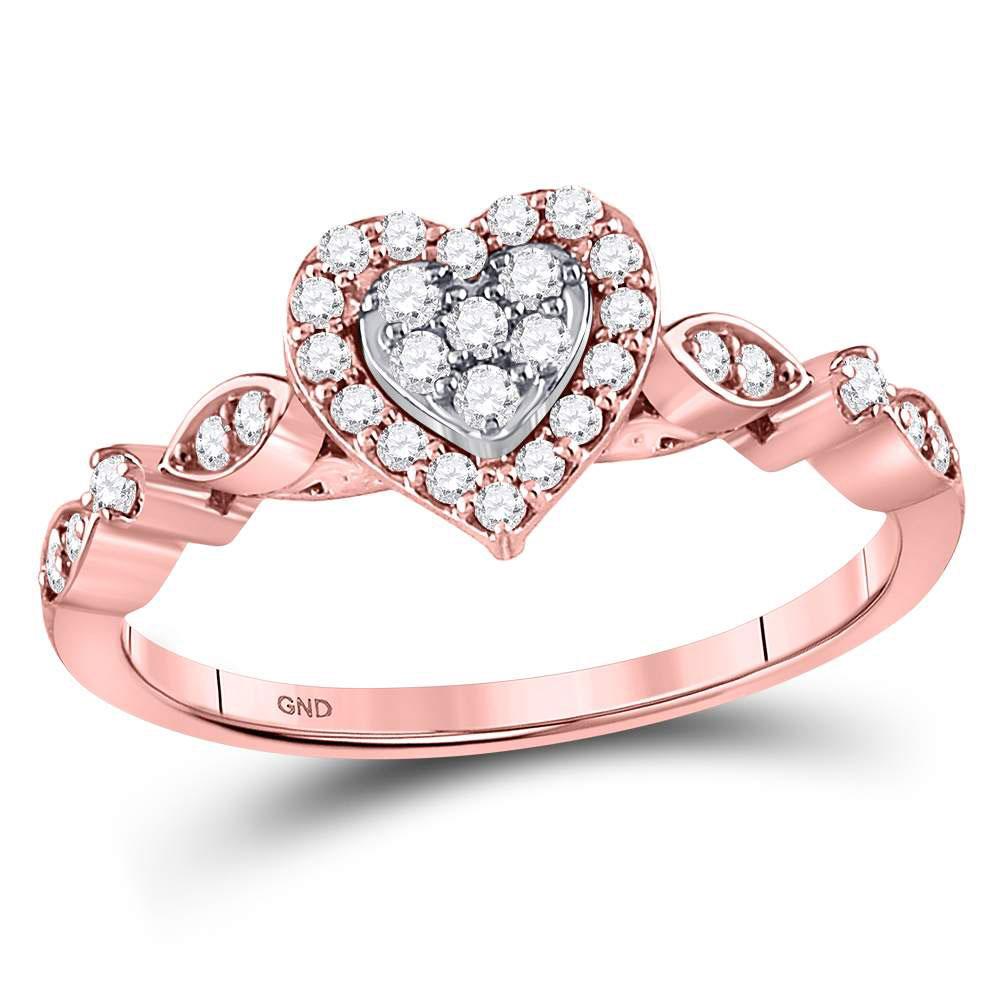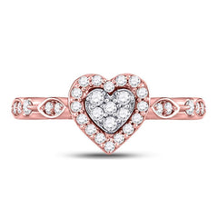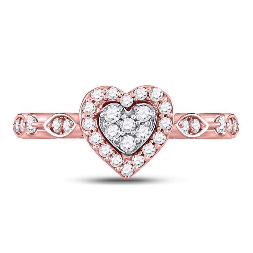 14kt Rose Gold Womens Round Diamond Heart Cluster Ring 1/3 Cttw