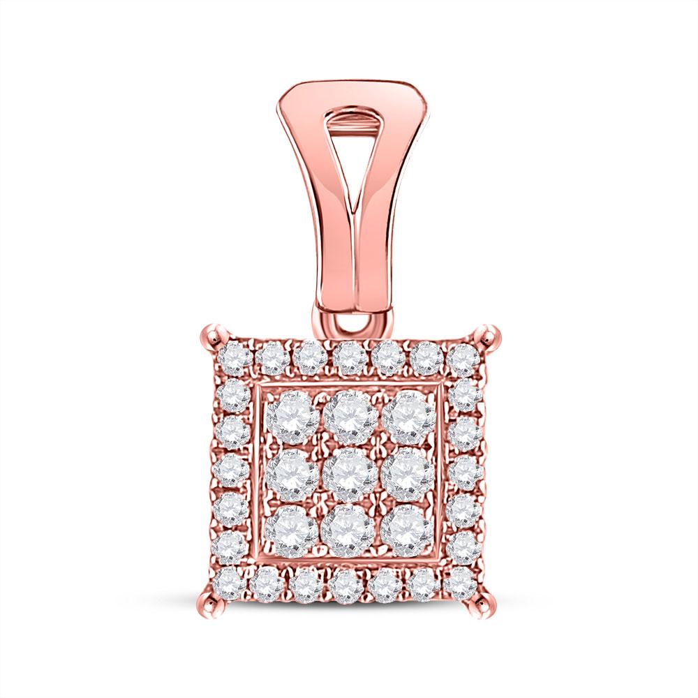 14kt Rose Gold Womens Round Diamond Square Cluster Pendant 1/4 Cttw