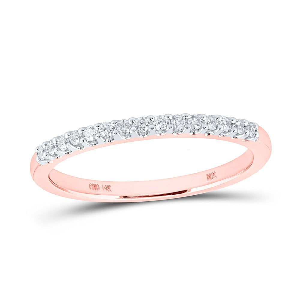 14kt Rose Gold Womens Round Diamond Wedding Single Row Band 1/6 Cttw