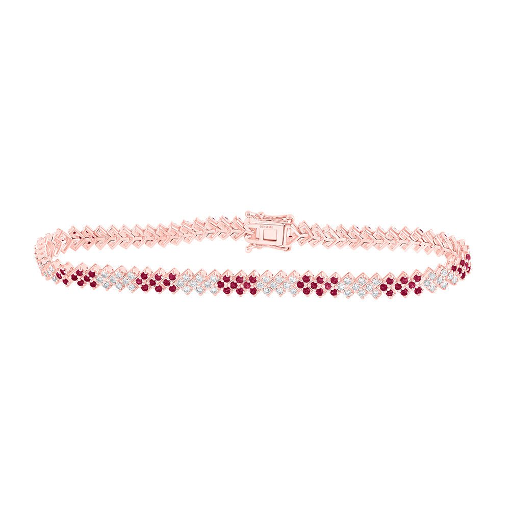 14kt Rose Gold Womens Round Ruby Diamond Tennis Bracelet 2-3/4 Cttw