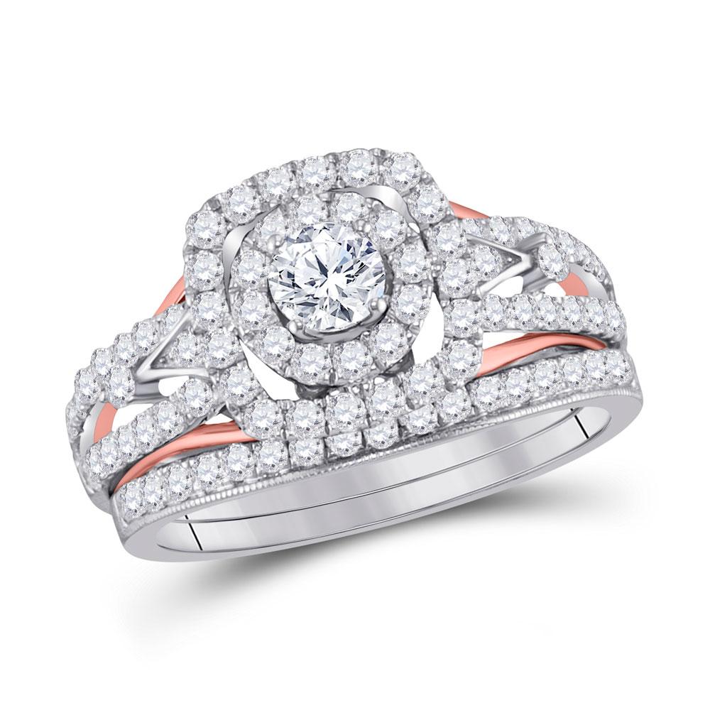 14kt Two-tone Gold Round Diamond Bridal Wedding Ring Band Set 1-1/4 Cttw