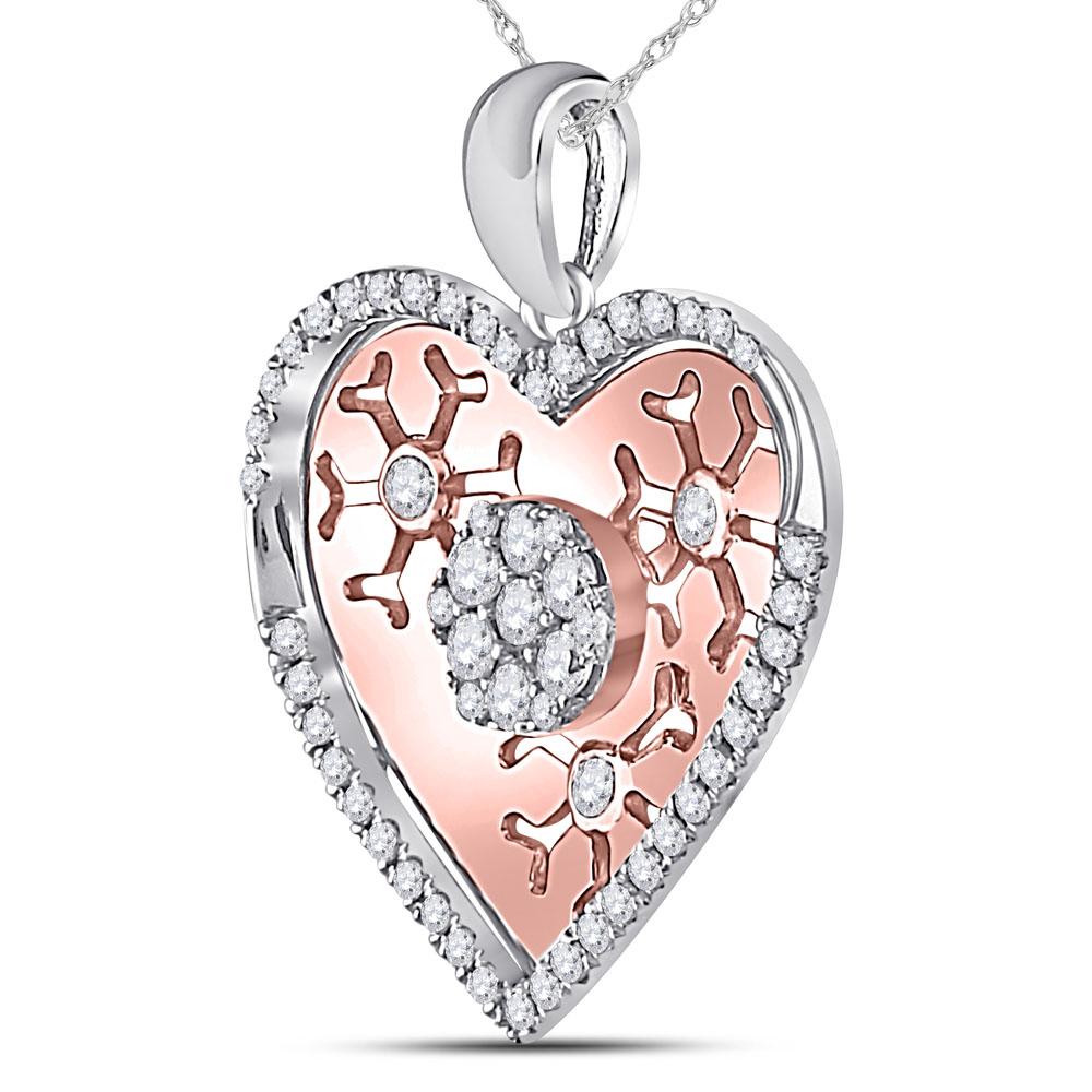 14kt Two-tone Gold Womens Round Diamond Cluster Heart Pendant 1/2 Cttw