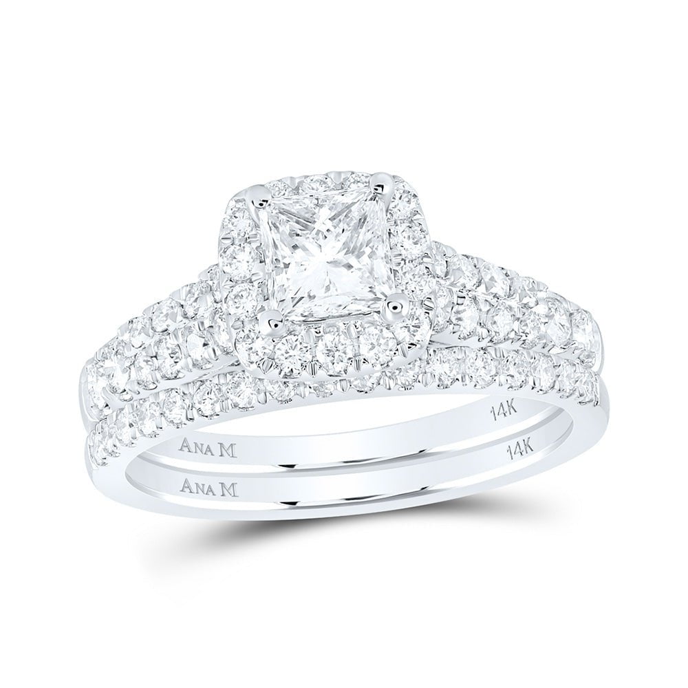 14kt White Gold Princess Diamond Halo Bridal Wedding Ring Band Set 1-1/2 Cttw