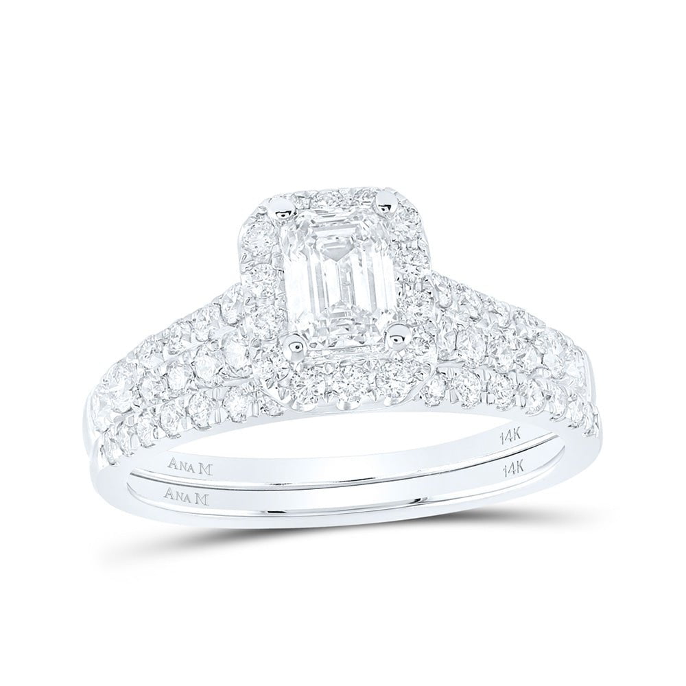 14kt White Gold Emerald Diamond Halo Bridal Wedding Ring Band Set 1-1/2 Cttw