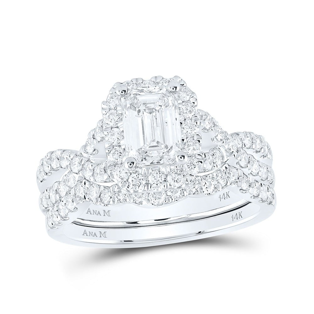 14kt White Gold Emerald Diamond Halo Bridal Wedding Ring Band Set 2 Cttw