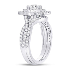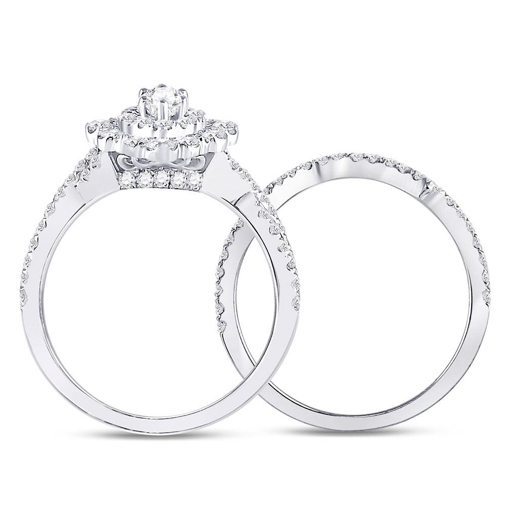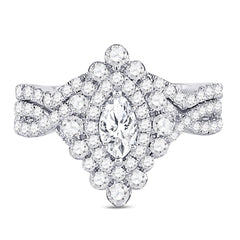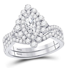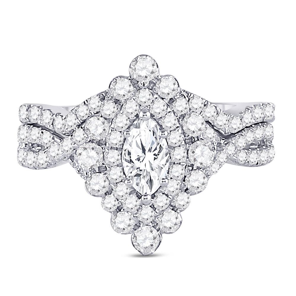 14kt White Gold Marquise Diamond Bridal Wedding Ring Band Set 2 Cttw
