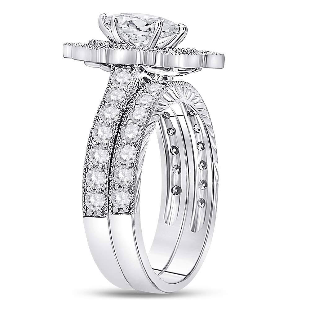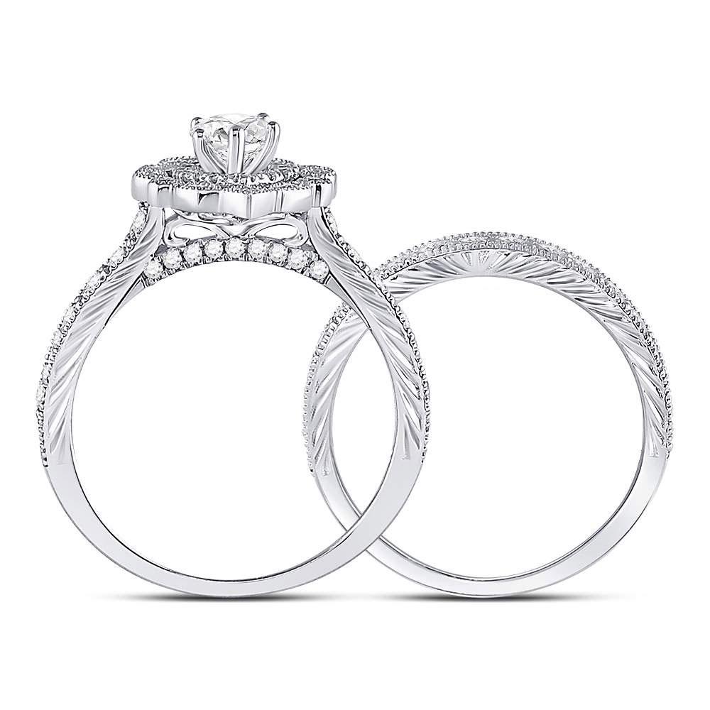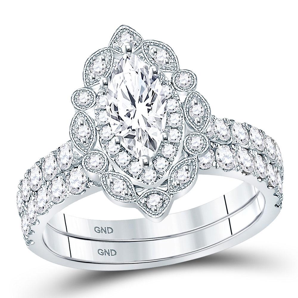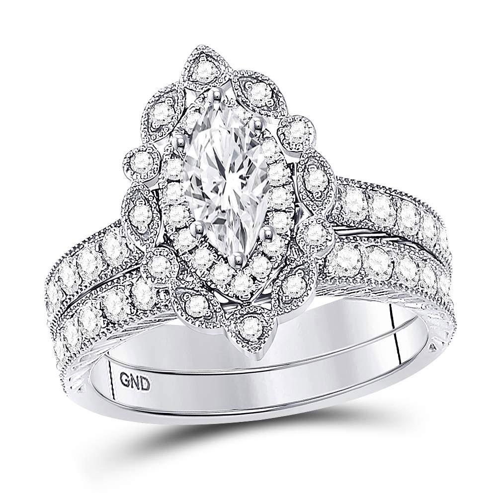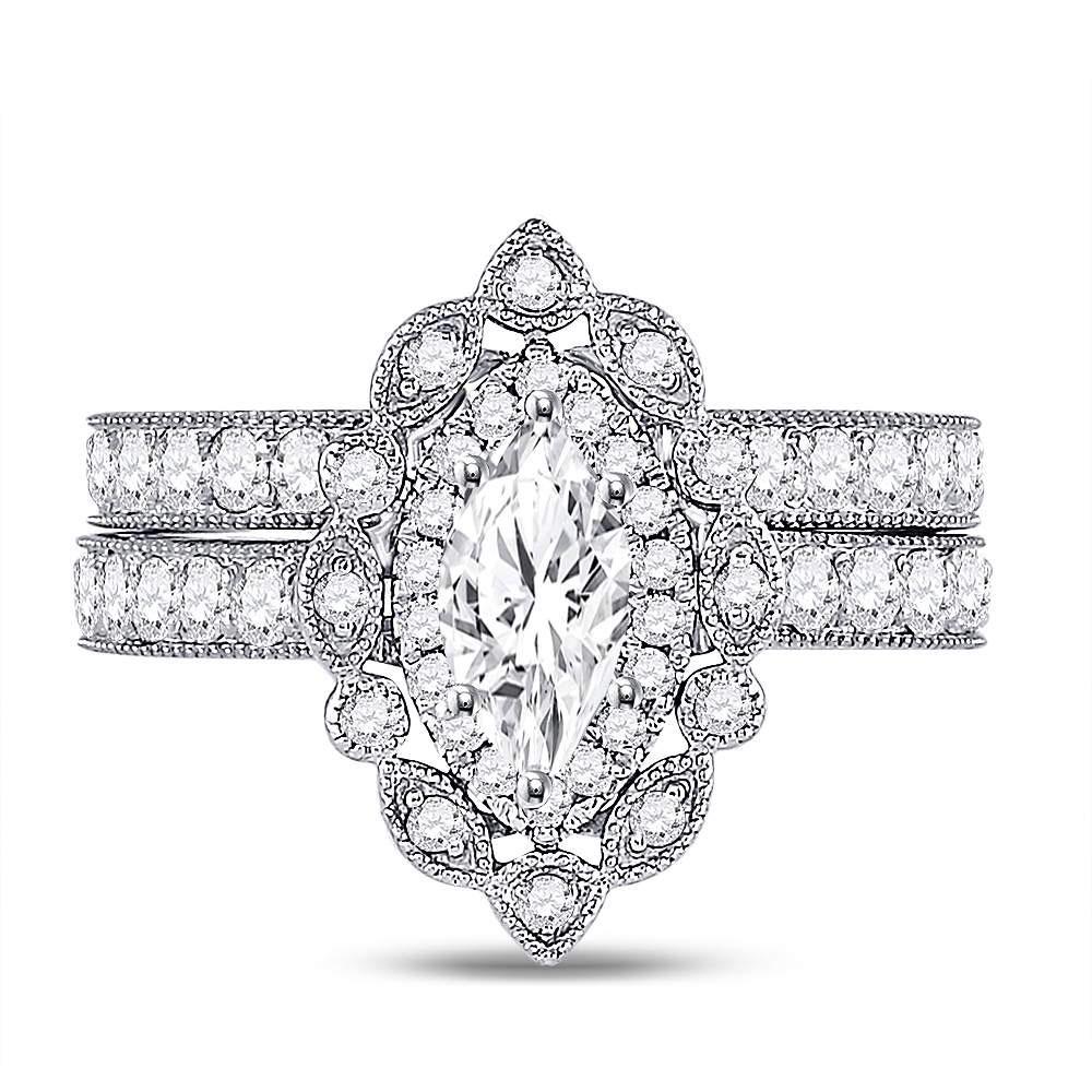 14kt White Gold Marquise Diamond Bridal Wedding Ring Band Set 2 Cttw