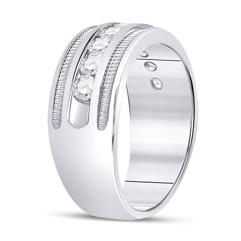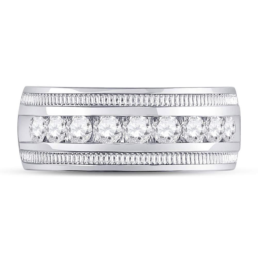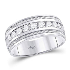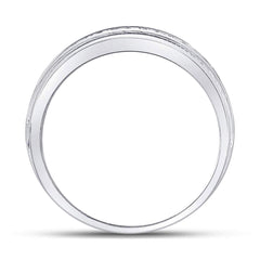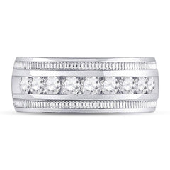 14kt White Gold Mens Round Diamond Single Row Textured Wedding Band Ring 1 Cttw