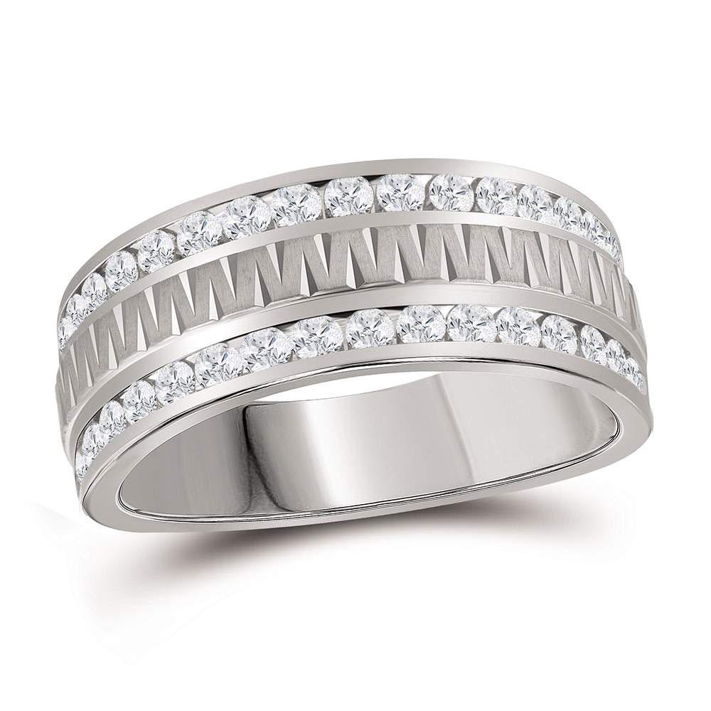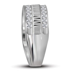 14kt White Gold Mens Round Diamond Wedding Double Row Band Ring 1 Cttw