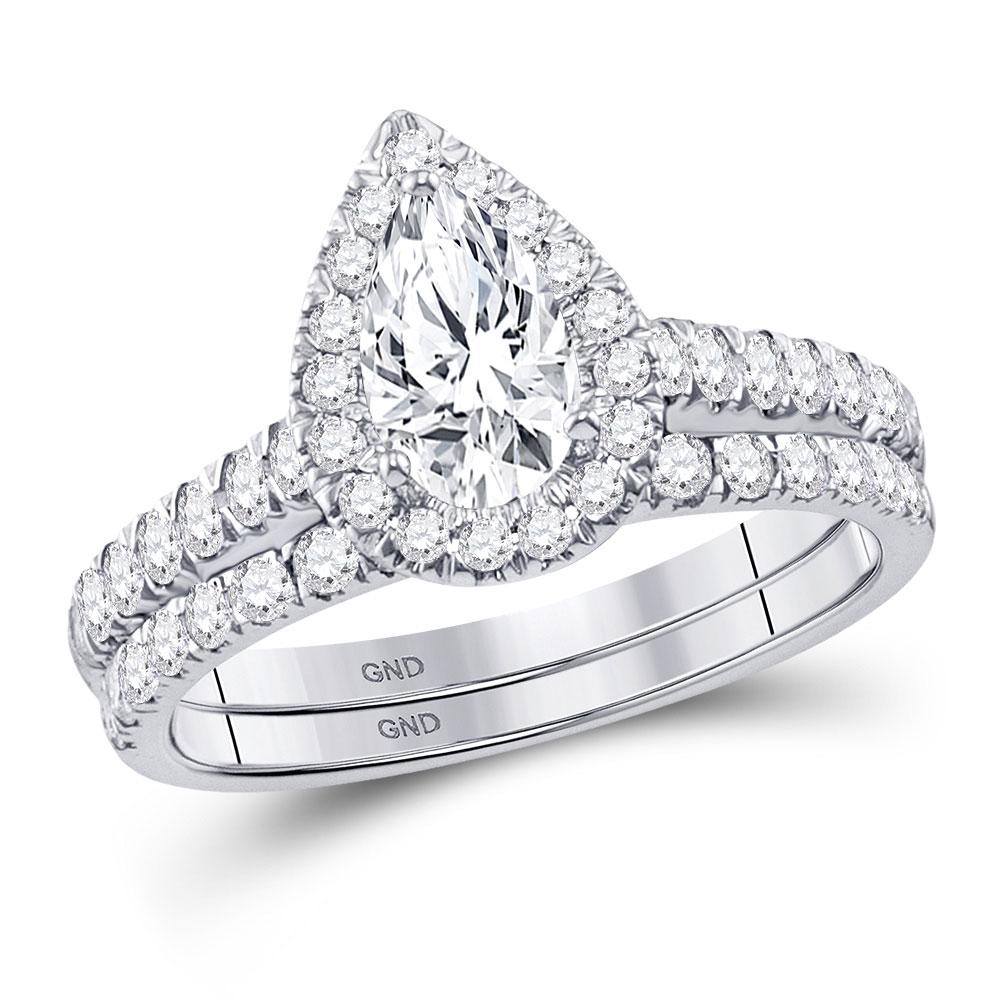 14kt White Gold Pear Diamond Bridal Wedding Ring Band Set 1-1/2 Cttw