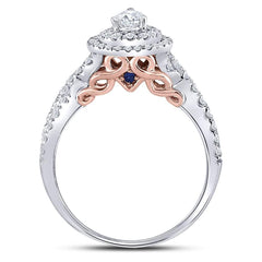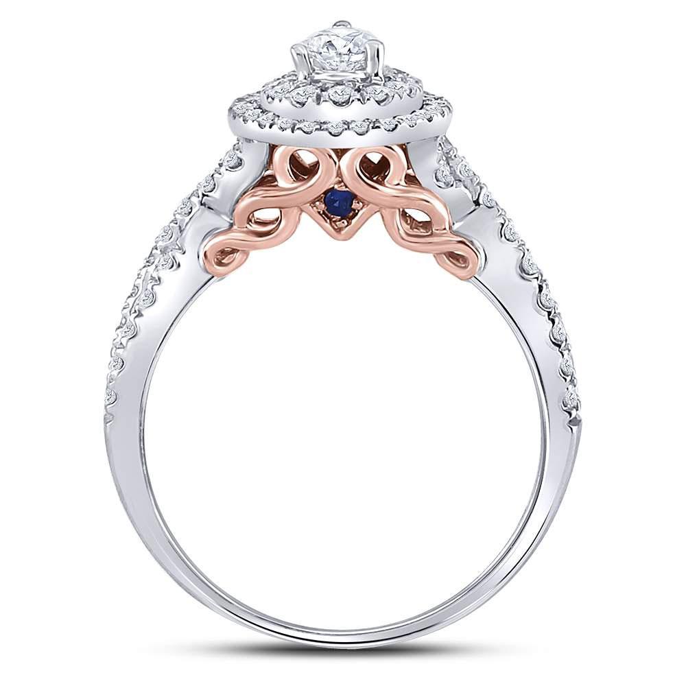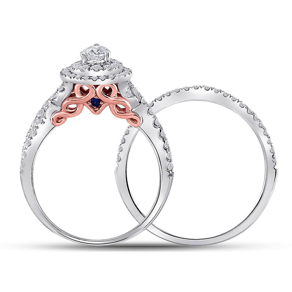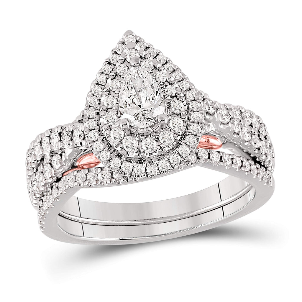 14kt White Gold Pear Diamond Bridal Wedding Ring Band Set 1 Cttw