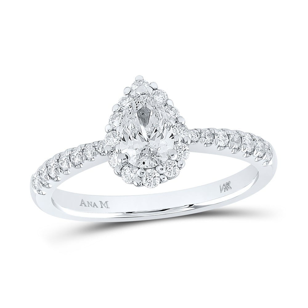 14kt White Gold Pear Diamond Halo Bridal Wedding Engagement Ring 7/8 Cttw