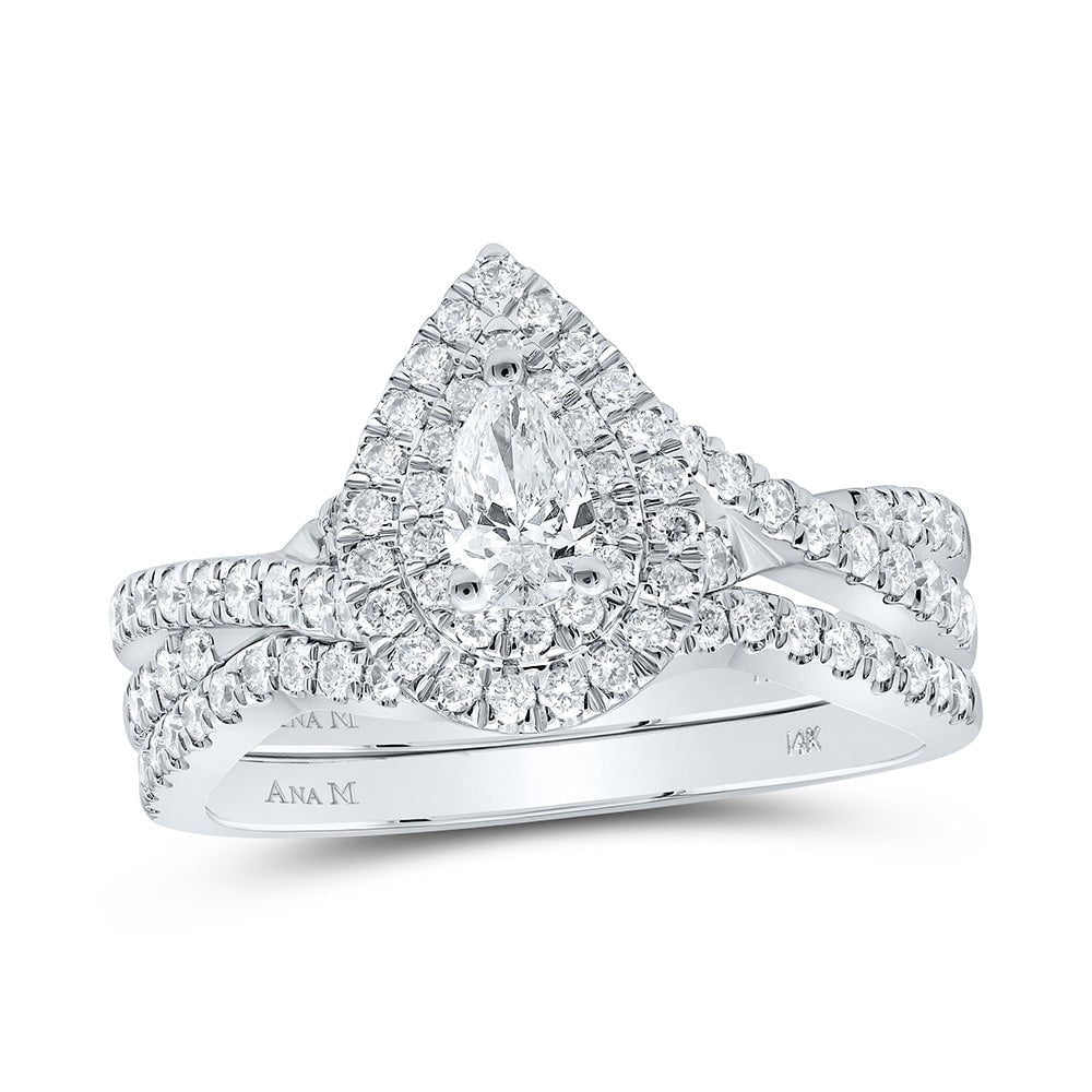 14kt White Gold Pear Diamond Halo Bridal Wedding Ring Band Set 1 Cttw