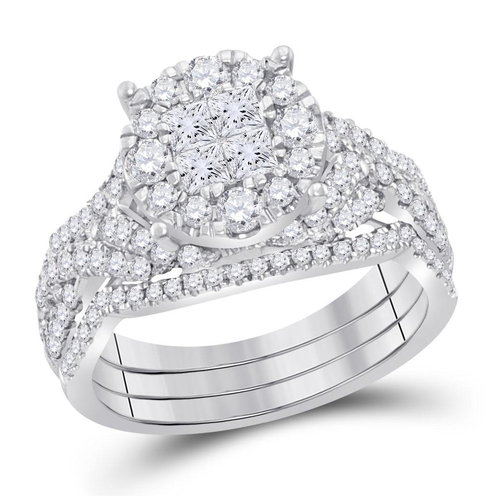 14kt White Gold Princess Diamond Bridal Wedding Ring Band Set 1-1/2 Cttw