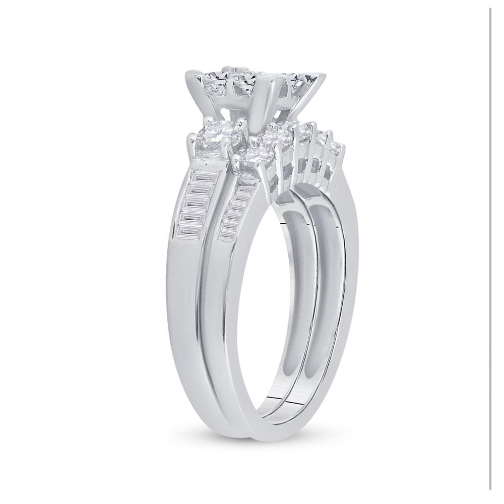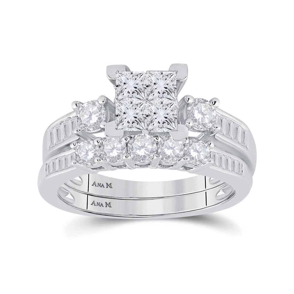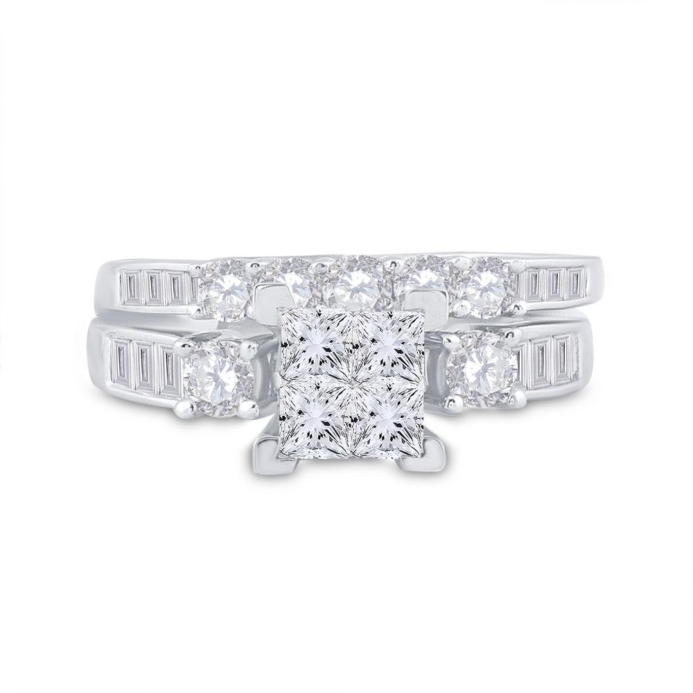 14kt White Gold Princess Diamond Bridal Wedding Ring Band Set 1-1/2 Cttw