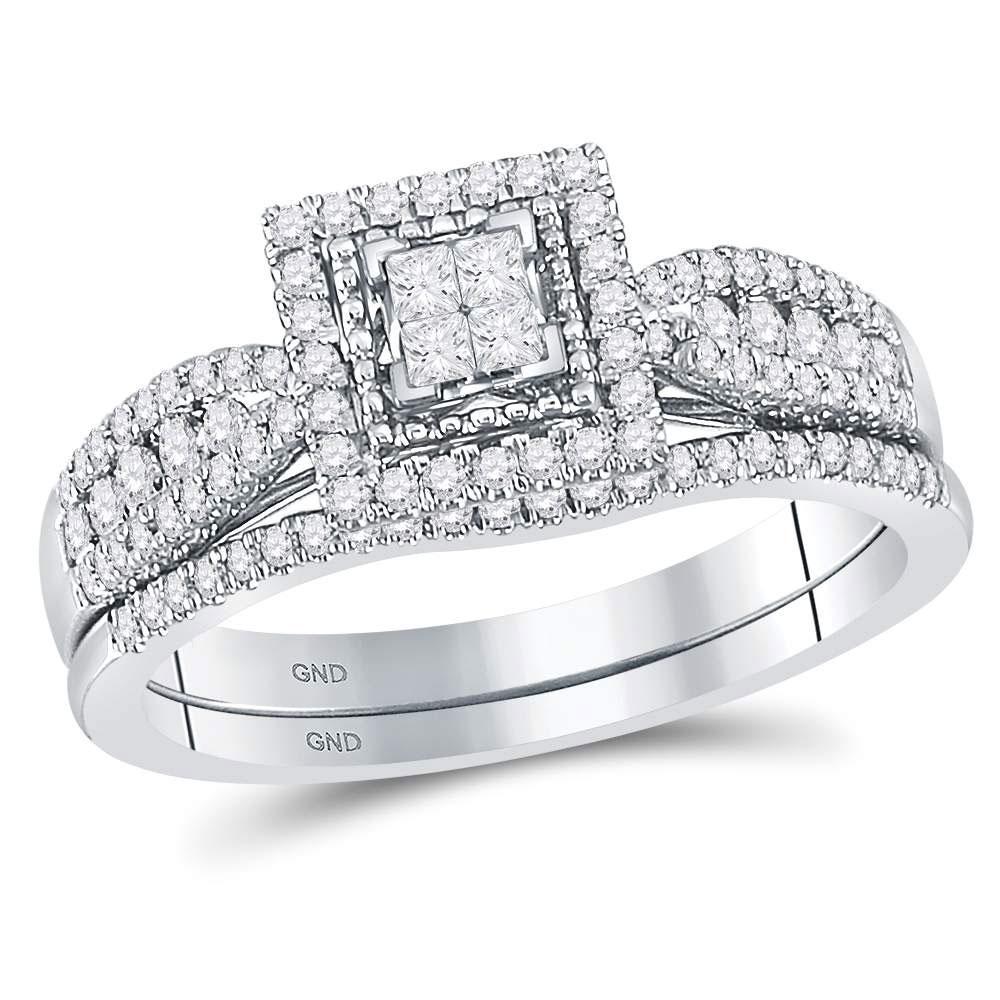 14kt White Gold Princess Diamond Bridal Wedding Ring Band Set 1/2 Cttw