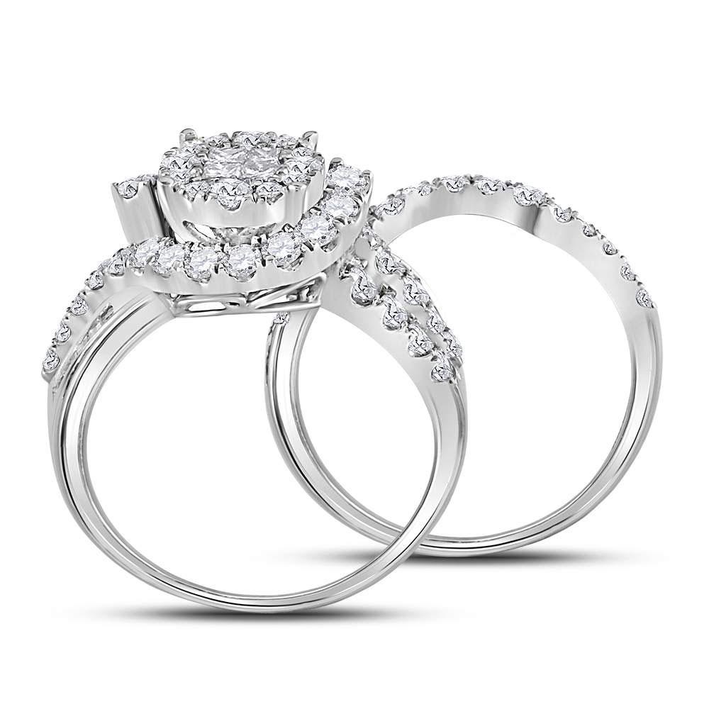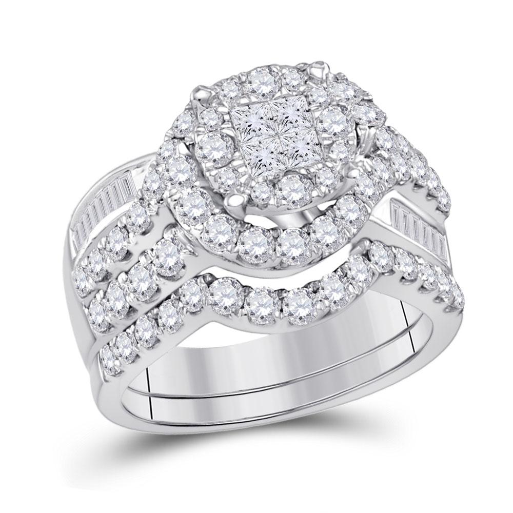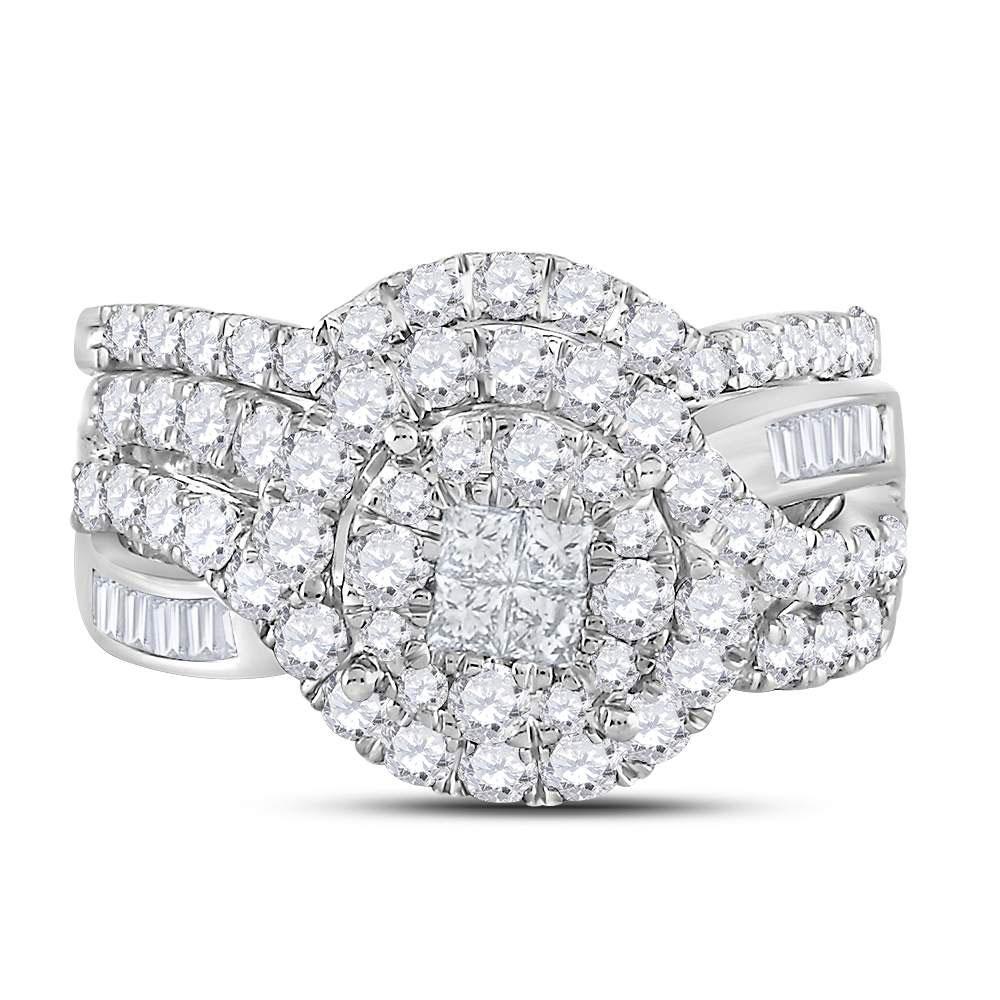 14kt White Gold Princess Diamond Bridal Wedding Ring Band Set 1-3/4 Cttw