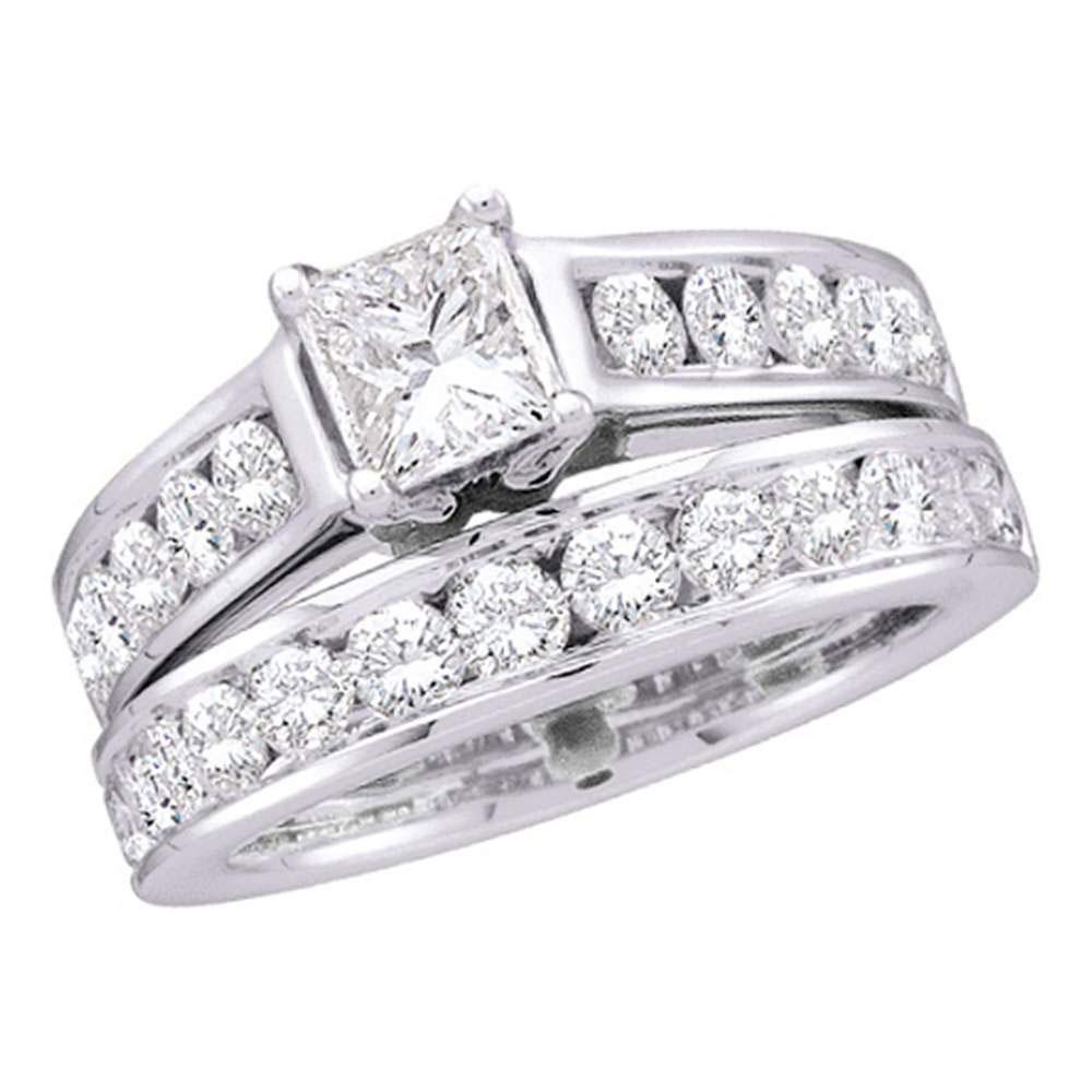 14kt White Gold Princess Diamond Bridal Wedding Ring Band Set 2 Cttw
