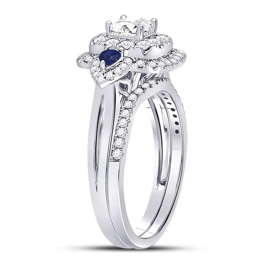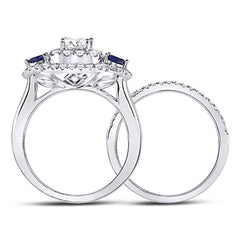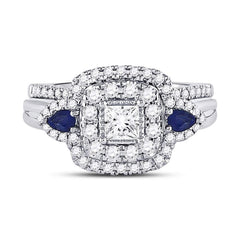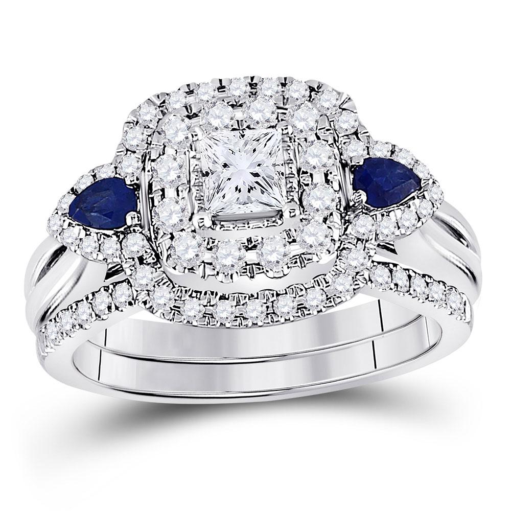 14kt White Gold Princess Diamond Bridal Wedding Ring Band Set 7/8 Cttw
