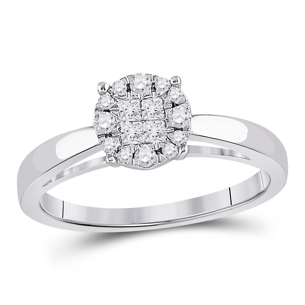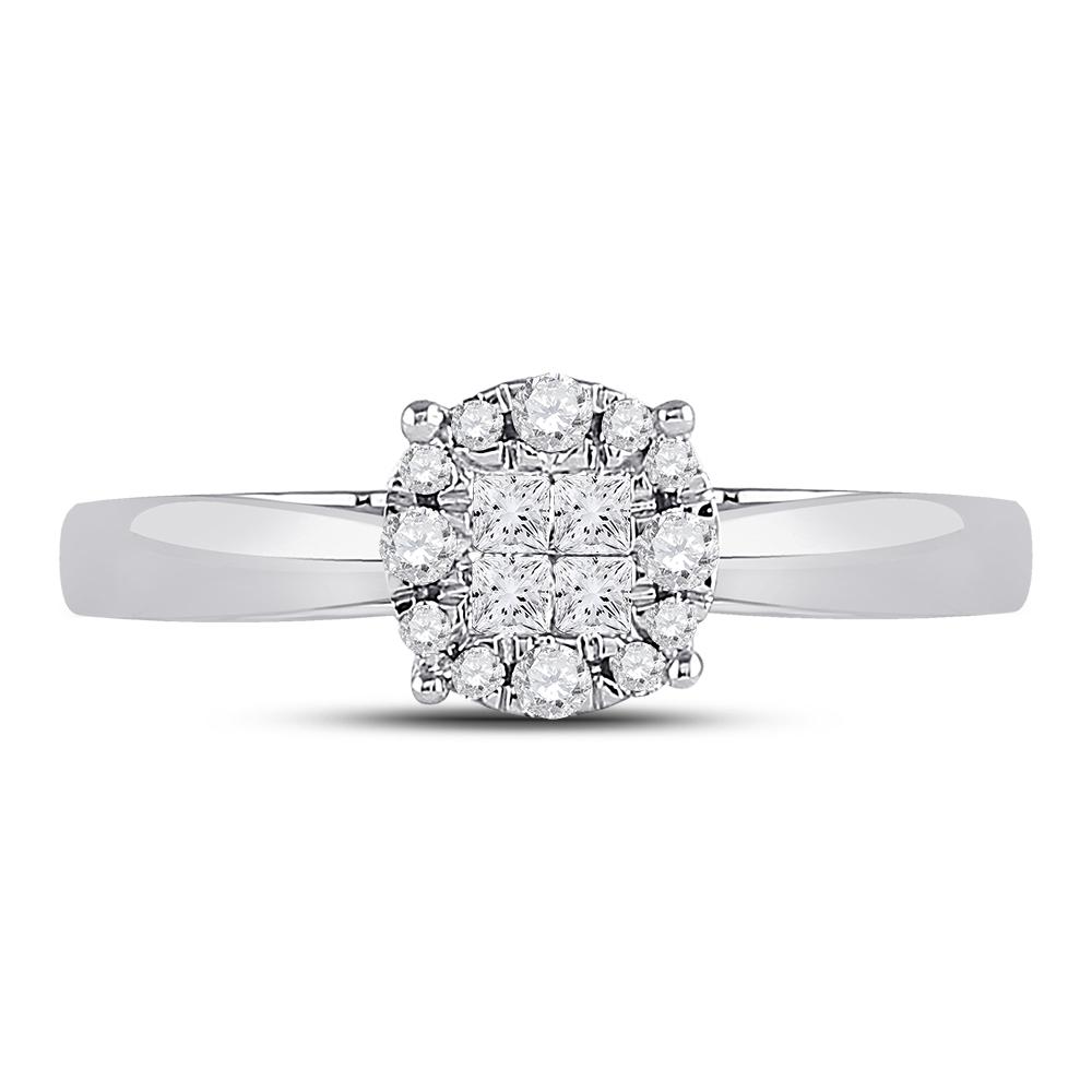 14kt White Gold Princess Diamond Cluster Bridal Wedding Engagement Ring 1/4 Cttw