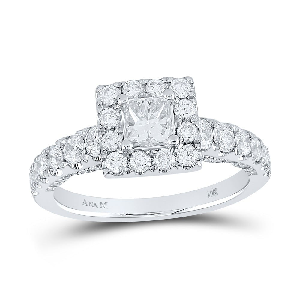 14kt White Gold Princess Diamond Halo Bridal Wedding Engagement Ring 1-1/2 Cttw