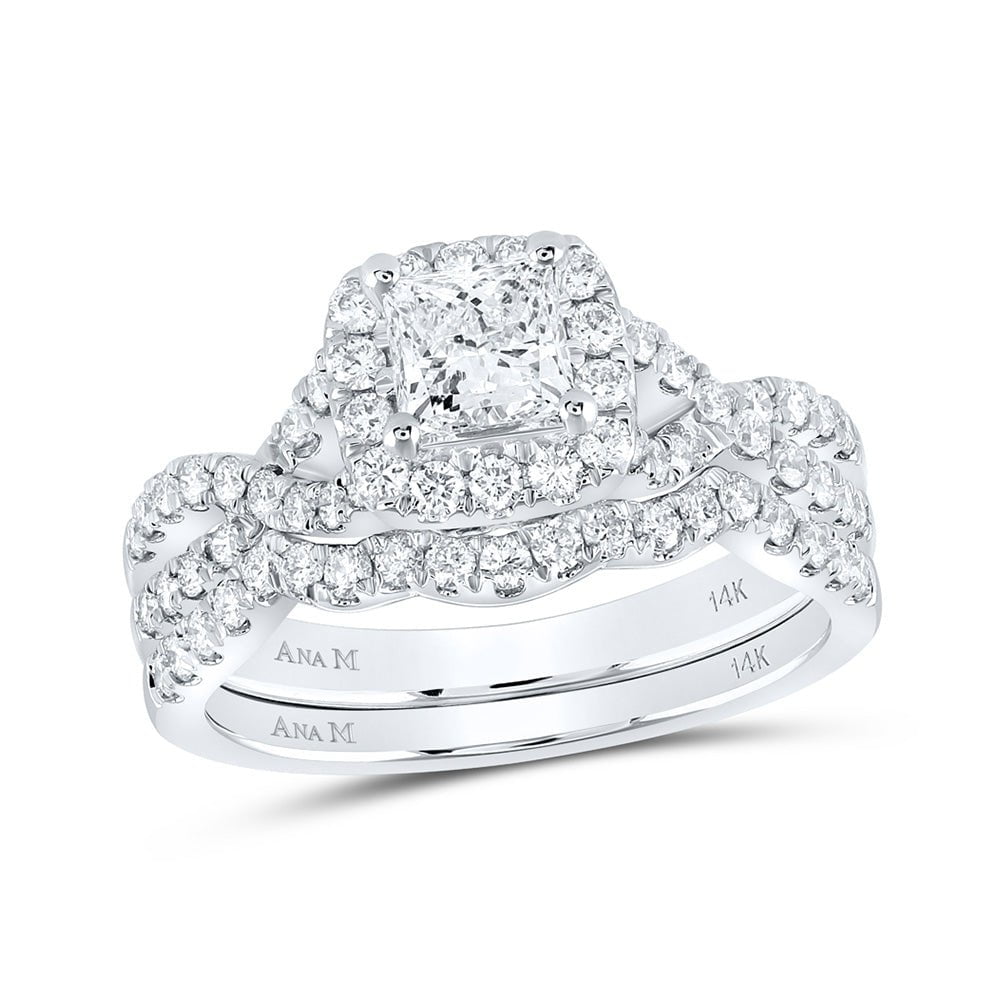 14kt White Gold Princess Diamond Halo Bridal Wedding Ring Band Set 1-1/2 Cttw