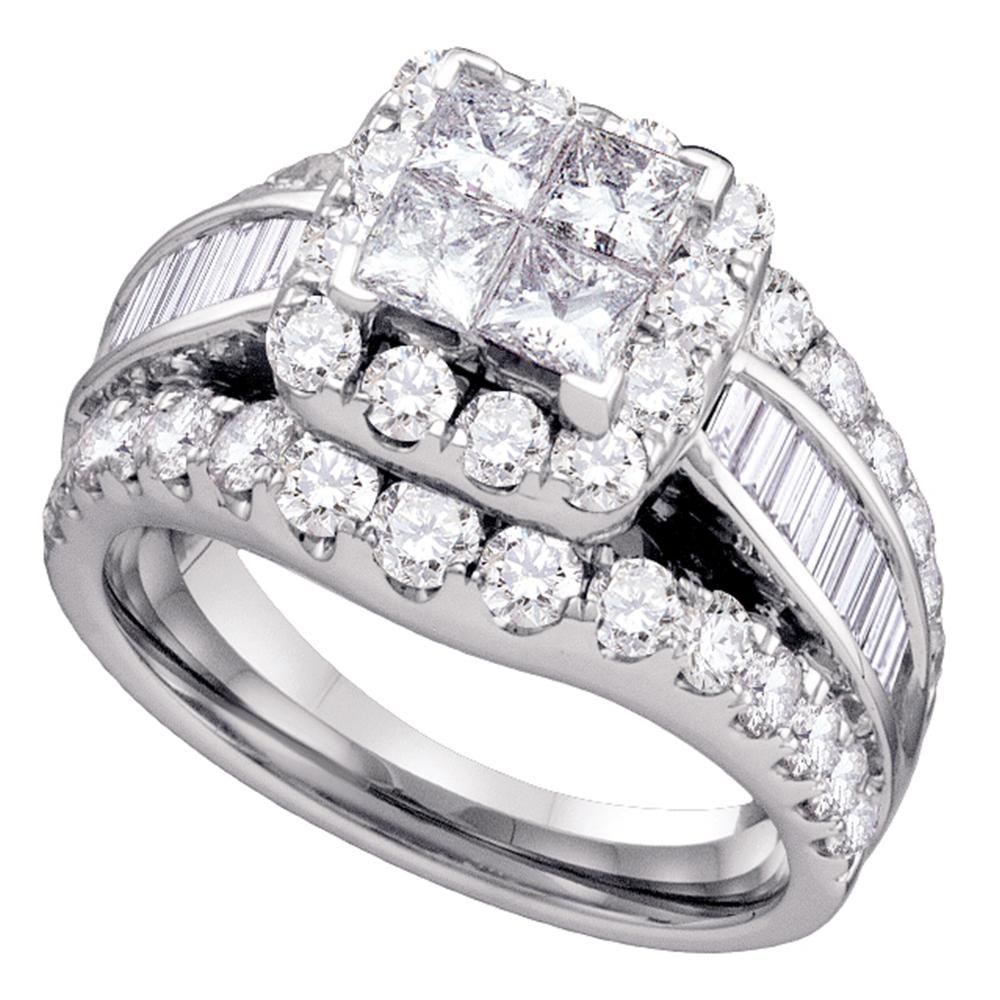 14kt White Gold Princess Diamond Halo Cluster Bridal Wedding Engagement Ring 3 Cttw