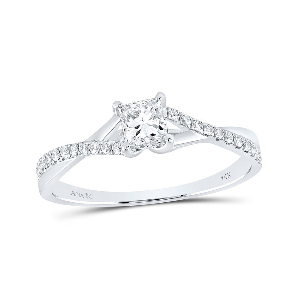 14kt White Gold Princess Diamond Solitaire Bridal Wedding Engagement Ring 1/2 Cttw