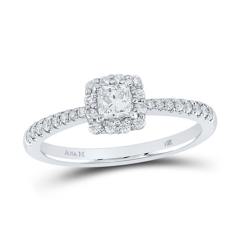 14kt White Gold Princess Diamond Square Halo Bridal Wedding Engagement Ring 1/2 Cttw