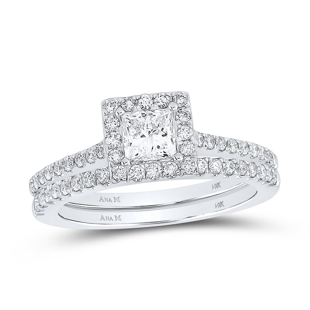 14kt White Gold Princess Diamond Square Halo Bridal Wedding Ring Band Set 1 Cttw
