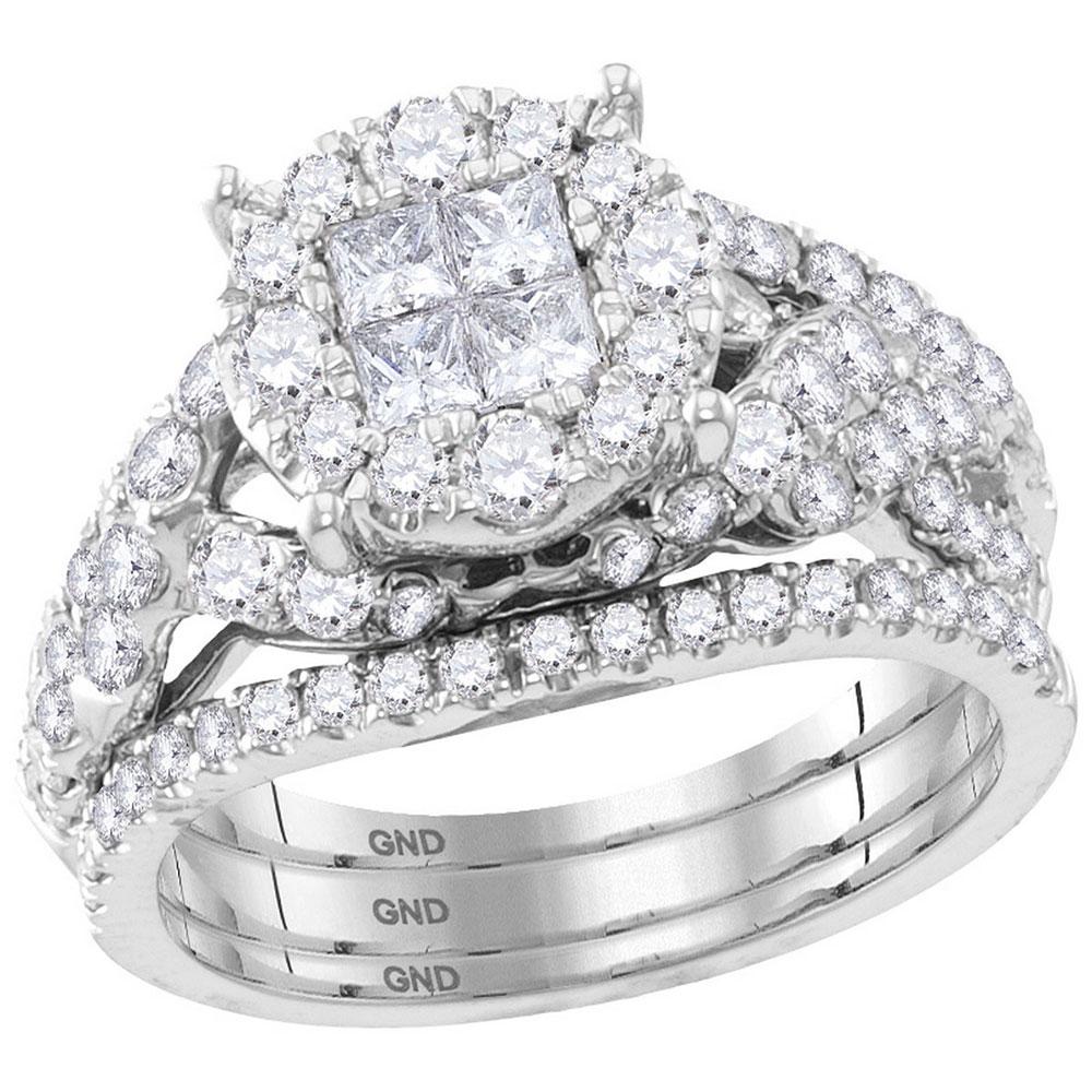 14kt White Gold Princess Round Diamond Bridal Wedding Ring Band Set 2 Cttw