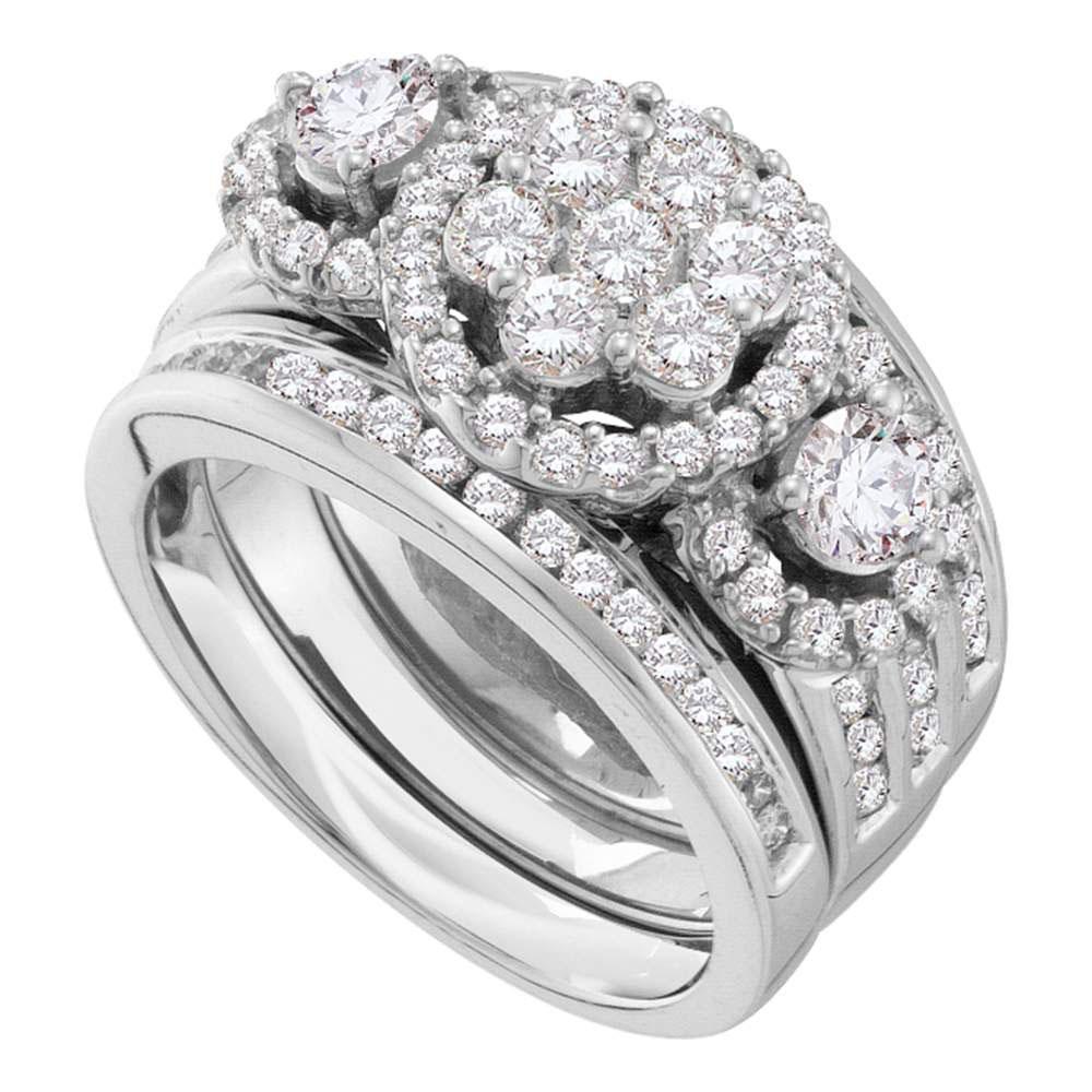 14kt White Gold Round Diamond 3-Piece Bridal Wedding Ring Band Set 2 Cttw